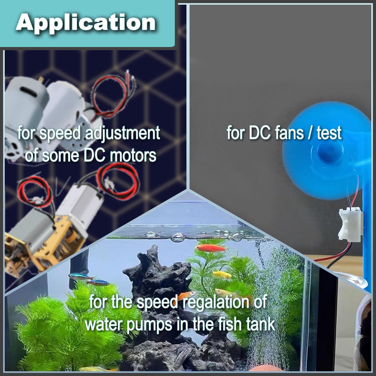 このスピードコントローラーは、DCモーター、ウォーターポンプ、ミニファン、DIYなどの速度調整に使用できます。