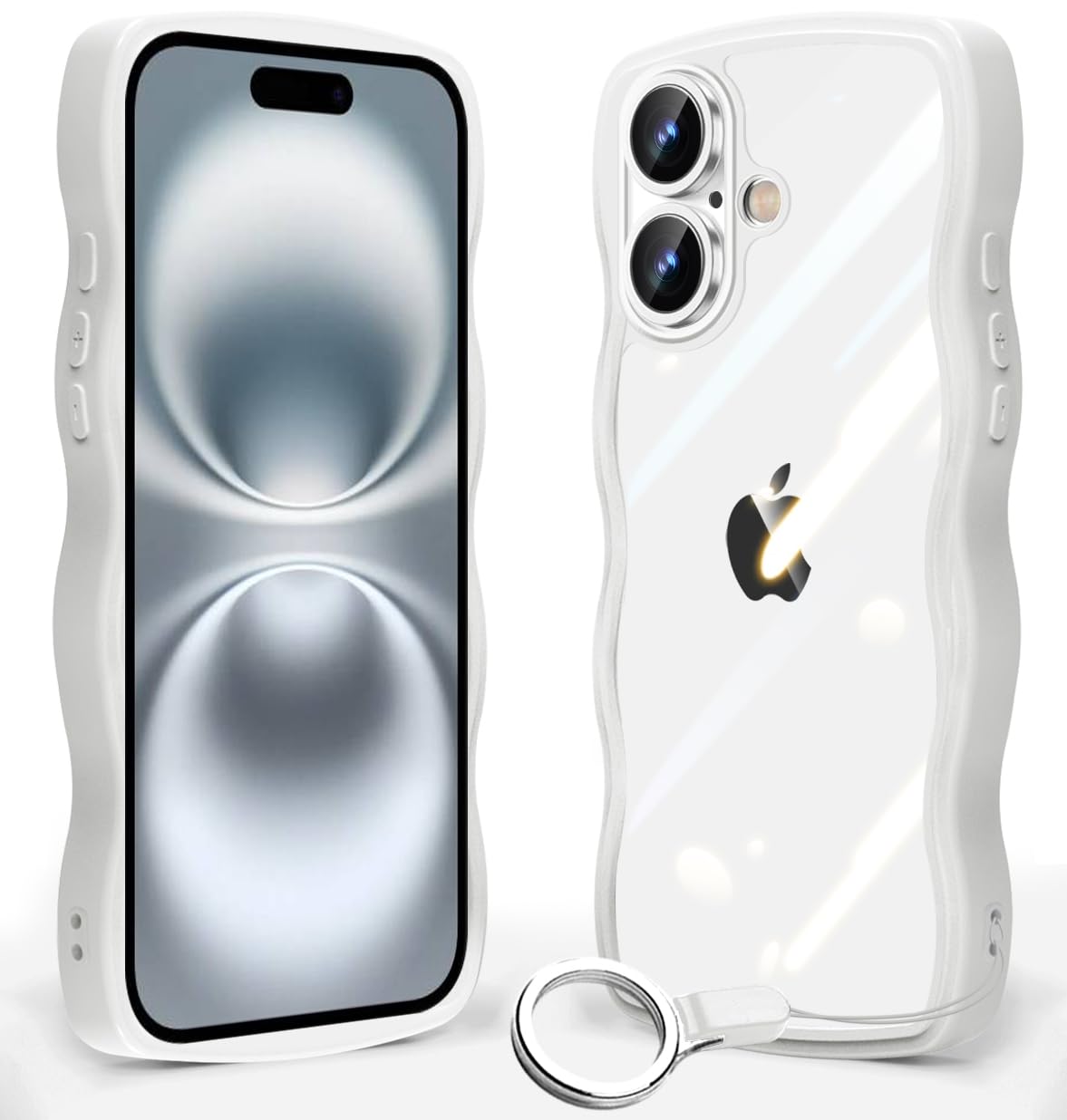 iPhone 16 用 ケース クリア アイフォン 16 用 カバー 人気 iPhone16 用 スマホケース 薄型 軽量 透明 TPU ストラップホール付き QIワイヤレス充電対応(ホワイト)