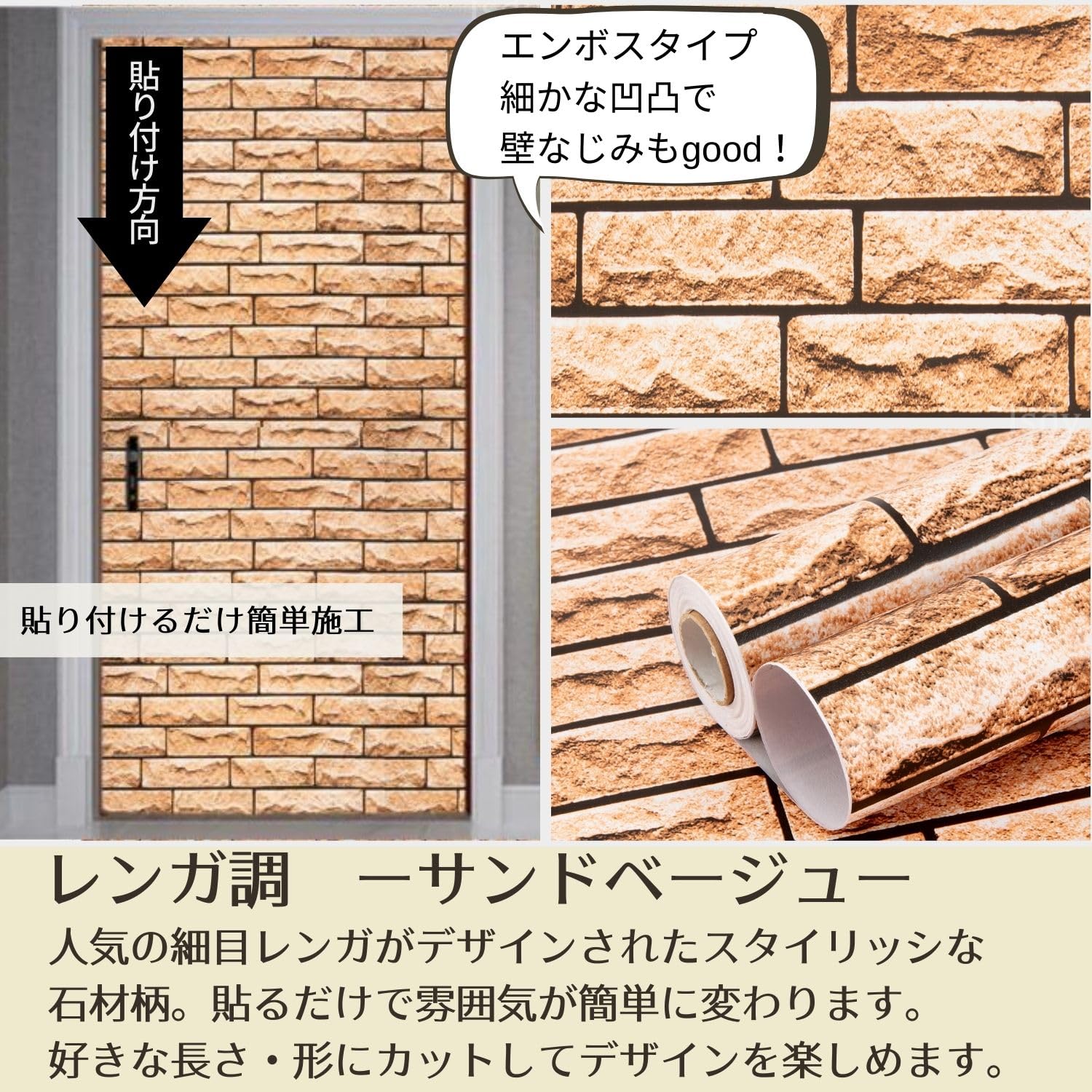 Isdy 壁紙 壁紙シール はがせる壁紙 リメイクシート レンガ 北欧 防水 (S:サンドベージュ)