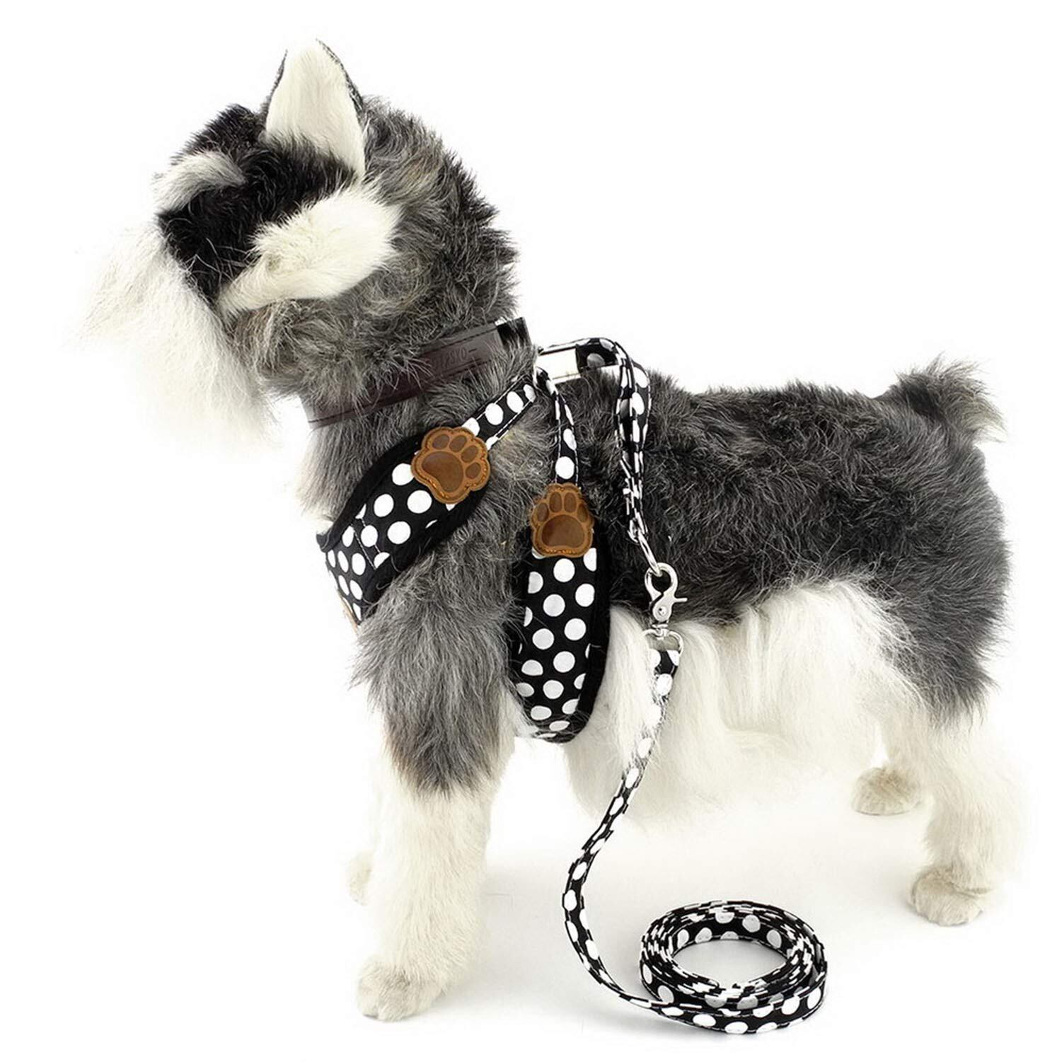 ZUNEA 犬用 ハーネス リード セット 可愛い ドット柄 ソフトメッシュ 胴輪 チワワ用 散歩 ペット用品 ドッグウェア 小型犬用 ブラック L