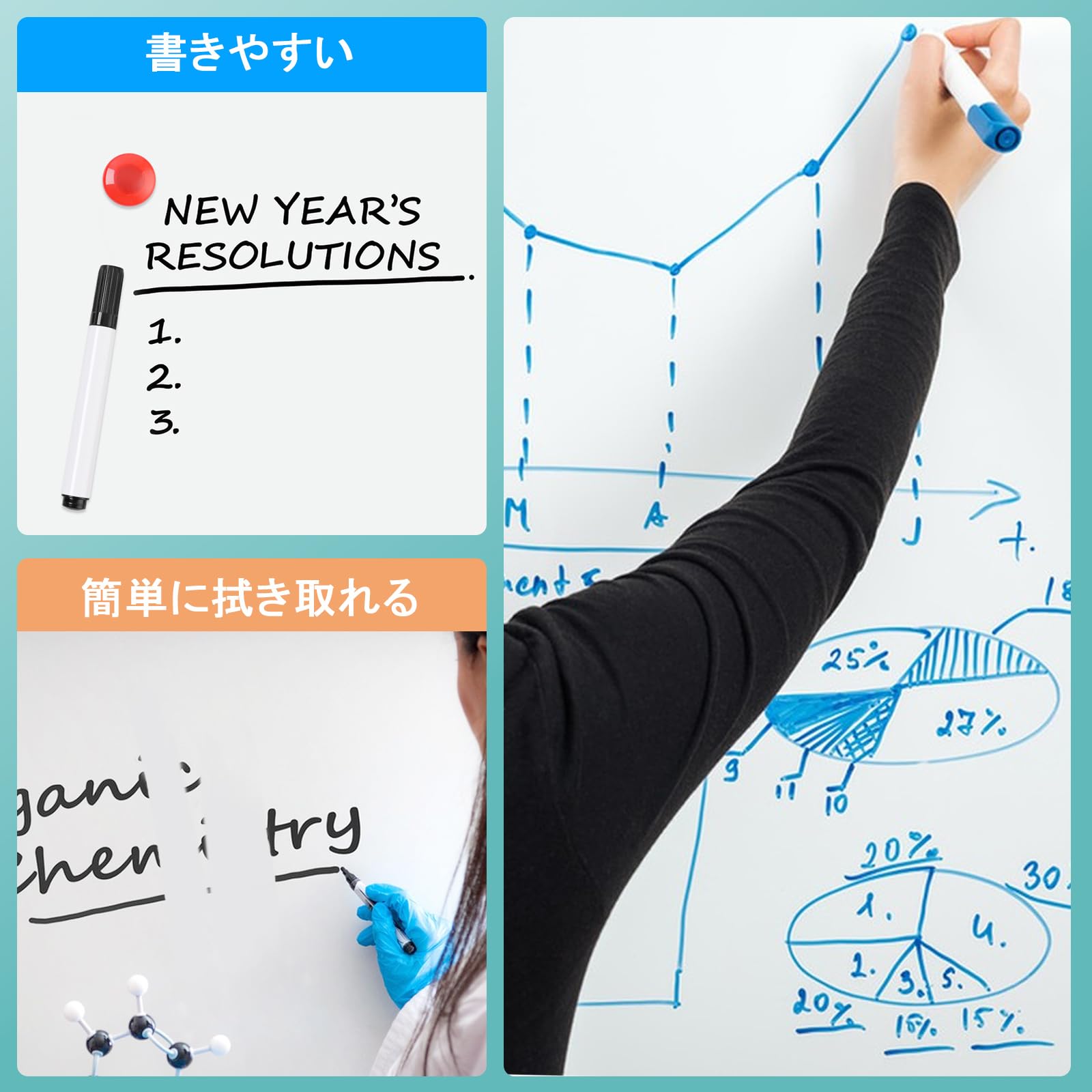 【多場面での活用性】 オフィスの会議メモ、家庭の予定表、学校の授業、冷蔵庫の伝言、子供の落書きなど、幅広いシーンで活躍します。豪華セットですぐに使い始められます。