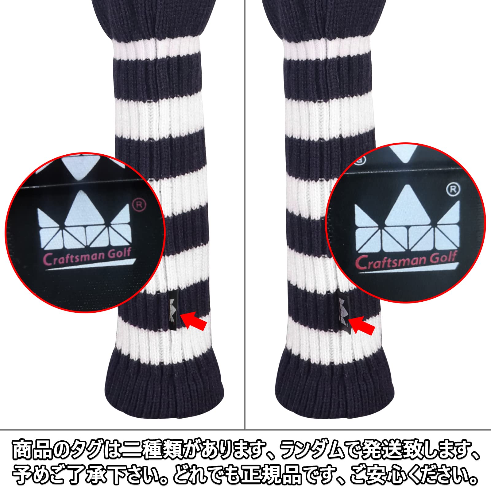 Craftsman(クラフトマン) ゴルフヘッドカバー 6点セット 番号刺繍(1FFHHH) クラブカバー ドライバー用・フェアウェイウッド用・ハイブリッド用 ニット ナンバータグ付け ブルー ホワイト