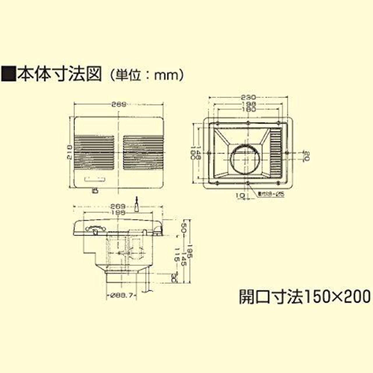 ●開口寸法/150×200mm<BR>●耐湿用モーターを採用。湿気・水分の多い場所でも安心してご使用ください。<BR>●同時吸排式だから気密性の高い浴室に適した換気扇です。<BR>●引きひもスイッチ付<BR>●電源コードプラグ付<BR>●シャッター付<BR>●ダクト接続可能(φ75)<BR>●別売品:φ100アダプター