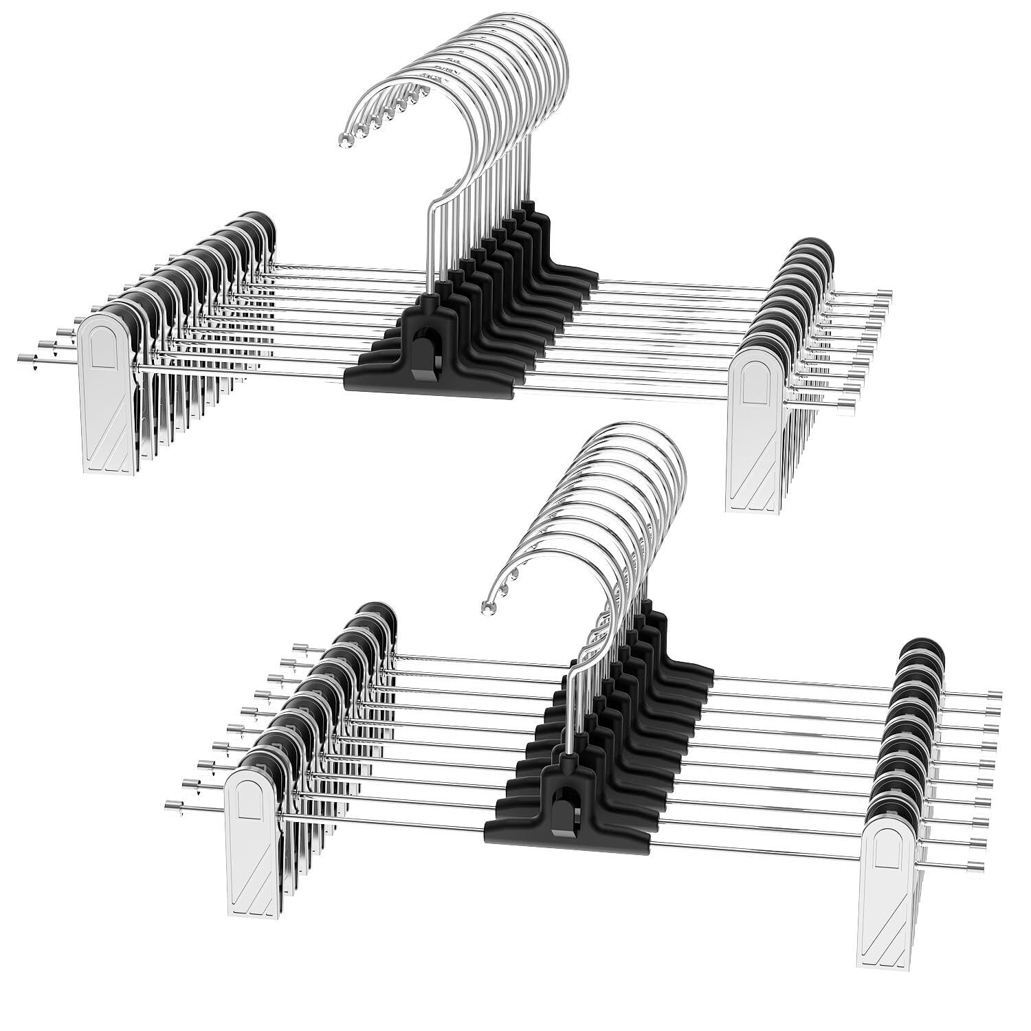 VEHHE ズボンハンガー スタッカブルフック設計付き省スペーススカートハンガー 調節可能なクリップ付き多機能ハンガー 360度回転式滑り止めハンガー 20本セット