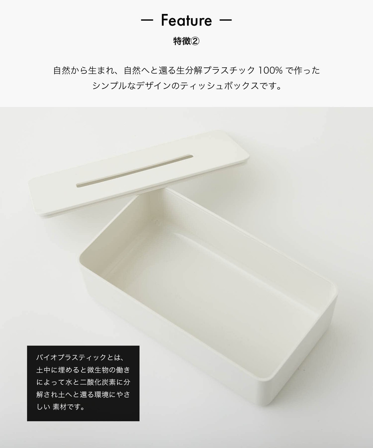 自然から生まれ、自然へと還る生分解プラスチック100%で作ったシンプルなデザインのティッシュボックスです。
