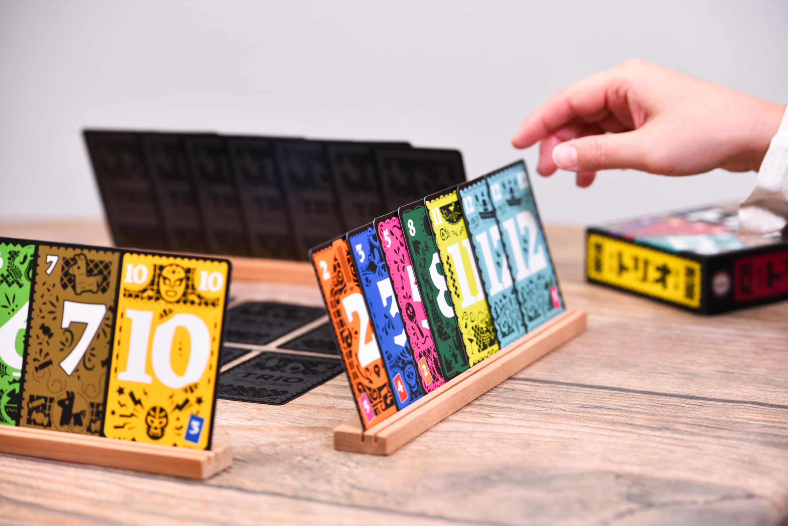 高級材として知られるマホガニー製のカードスタンドです。280mmの長さは一般的な正方形サイズのボードゲーム箱にちょうど収まるサイズです。一般的な木材に比べ比重が高く、薄型の設計としたため、カードが倒れにくく安定しています。 また、カードを立てる溝は2列用意あり、たくさんのカードを並べることが可能です。