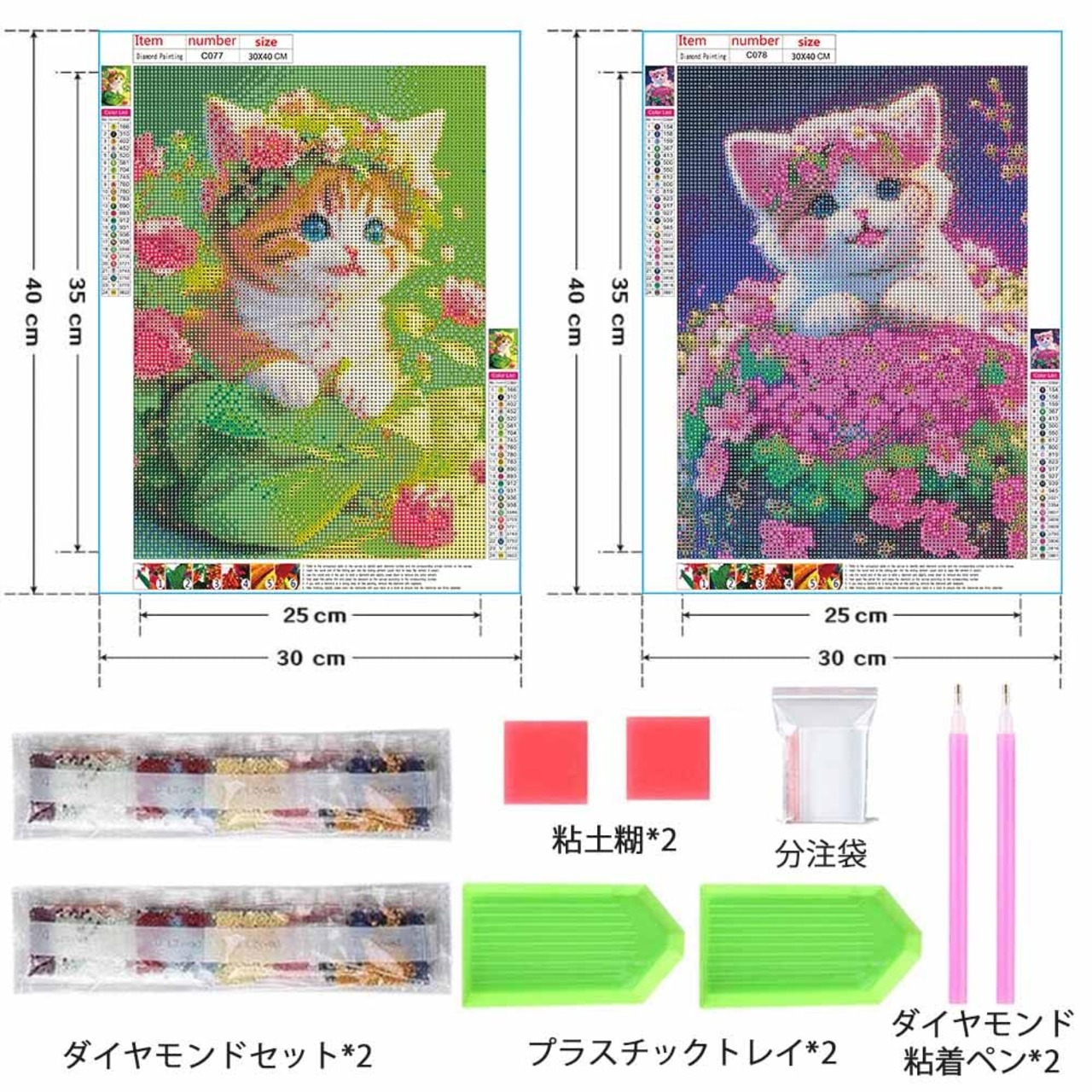サムコス ダイヤモンドアート キット ダイヤモンドの絵画 2個セット きれい 全面貼り付け ダイヤモンドアート 5D 初心者 大人の子供 DIY 手芸キット 家の壁の装飾 (ネコ)