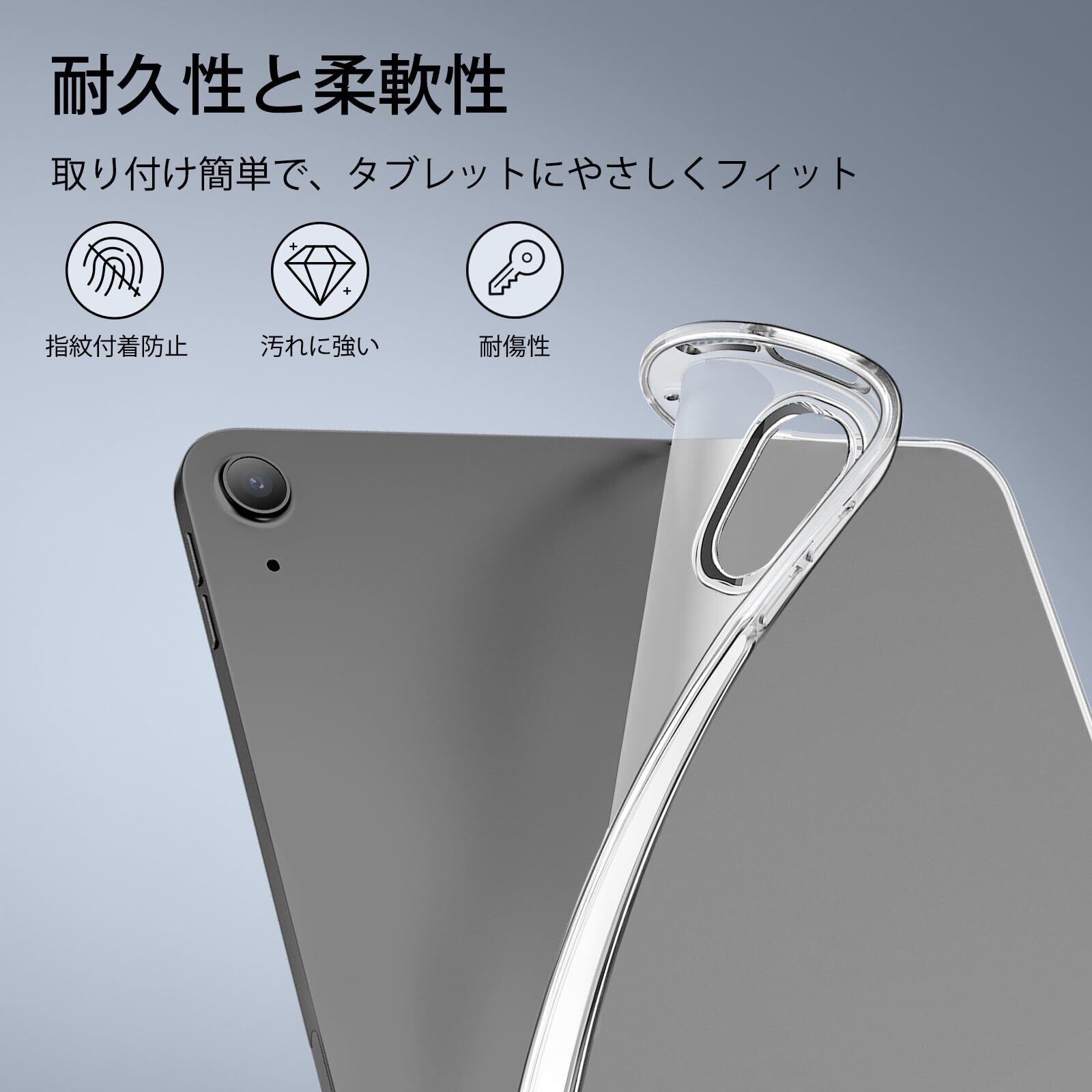 【スリムかつ軽量】:軽量な背面のみのデザインで、かさばることなくiPadを保護し、柔らかいゴム感素材がiPadに傷を残すことなく最大の耐久性を提供します