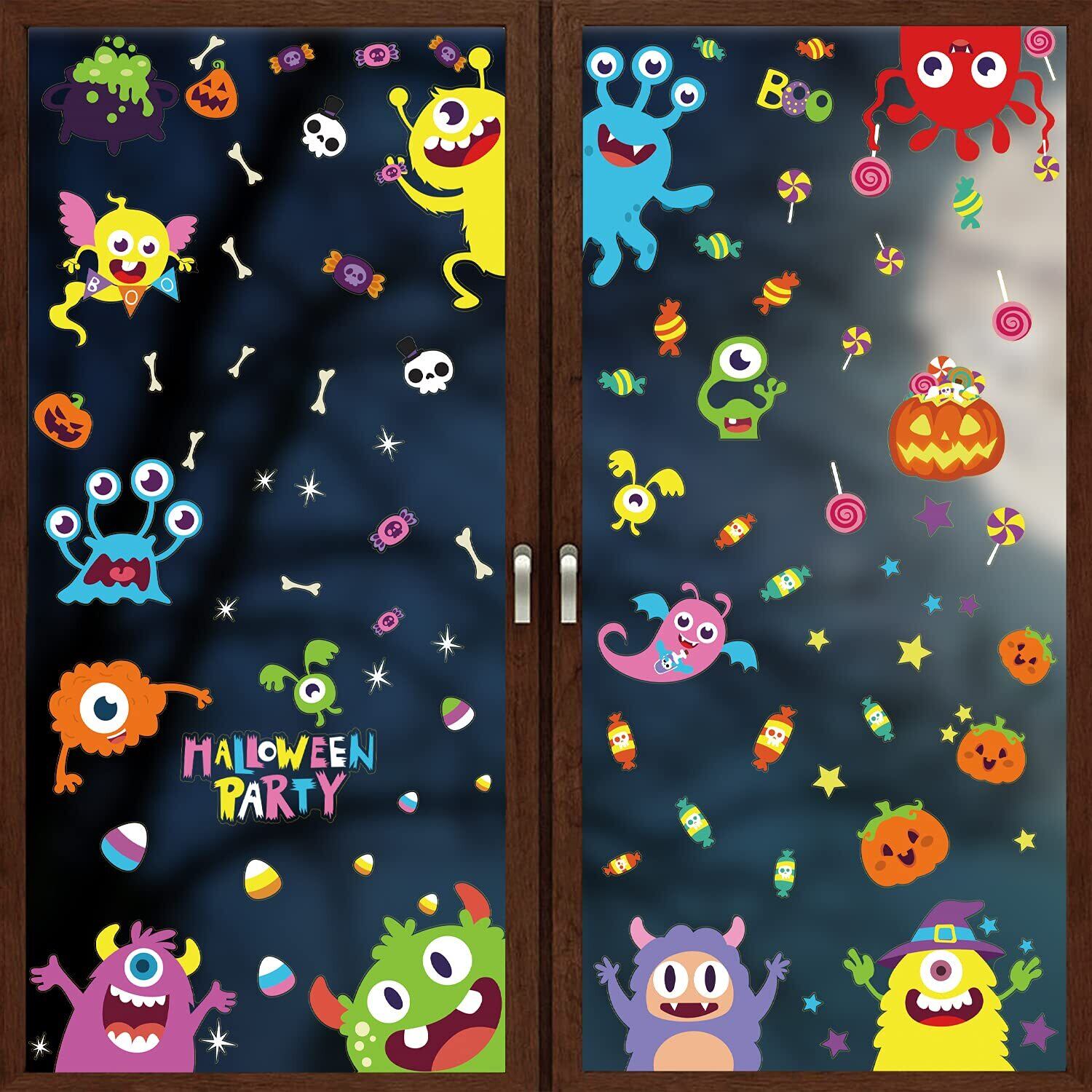 DERAYEE ハロウィン 静電 ステッカー ウォール 両面 モンスター 95pcs入り 剥がせる 汚れない 怪獣 静電気シール 窓(片目の怪獣)