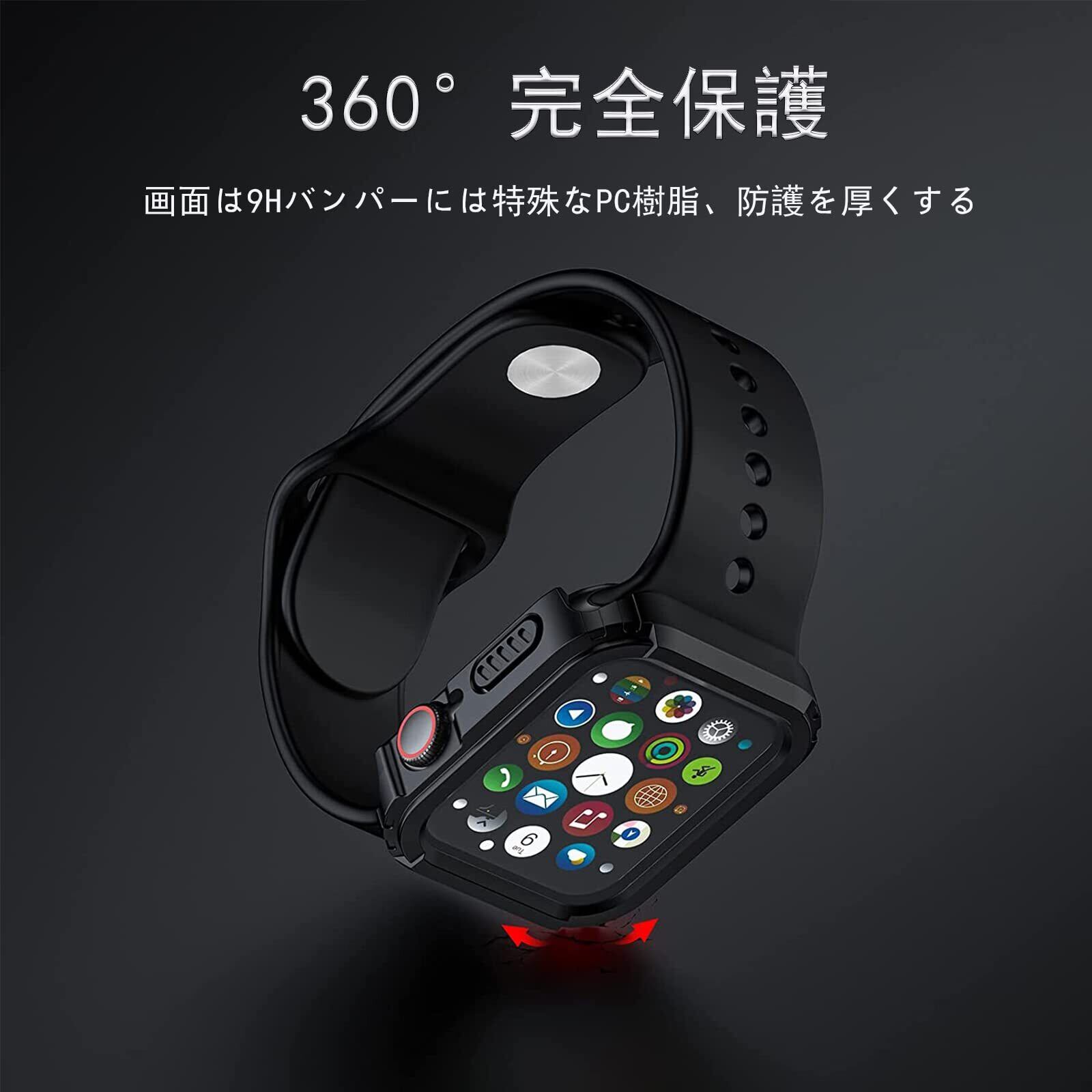 AMAPC for Apple Watch ケース 40mm 44mm 防水ケース IP68完全防水 バンド 水泳・スポーツ専用 ガラスフィルム 一体型 applewatch用 カバー アップルウォッチ ケース 全面保護 耐久性 傷防止 Apple Watch 6/SE3/SE2/SE/5/4 44mm対応 ブラック