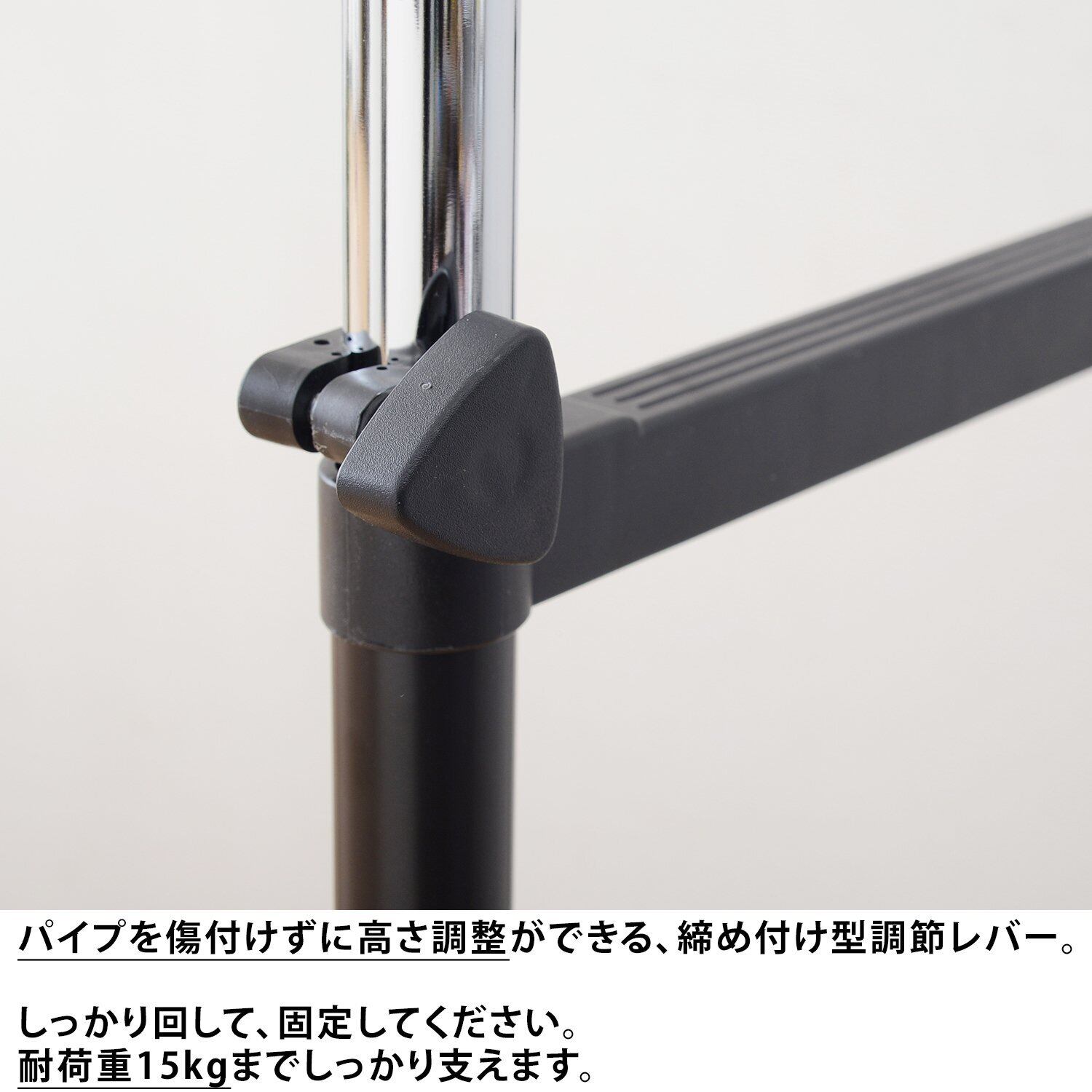高さ調整ができるパイプハンガーラック、たっぷり収納のダブルタイプ