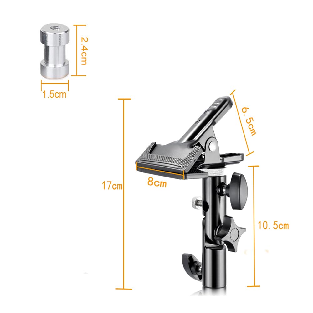 ユニバーサルな互換性 - リフレクター、背景幕、傘などを固定できます。取り外し可能な1/4〜3/8インチのネジは、ほとんどの撮影機材に対応します。最大荷重:3kg。
