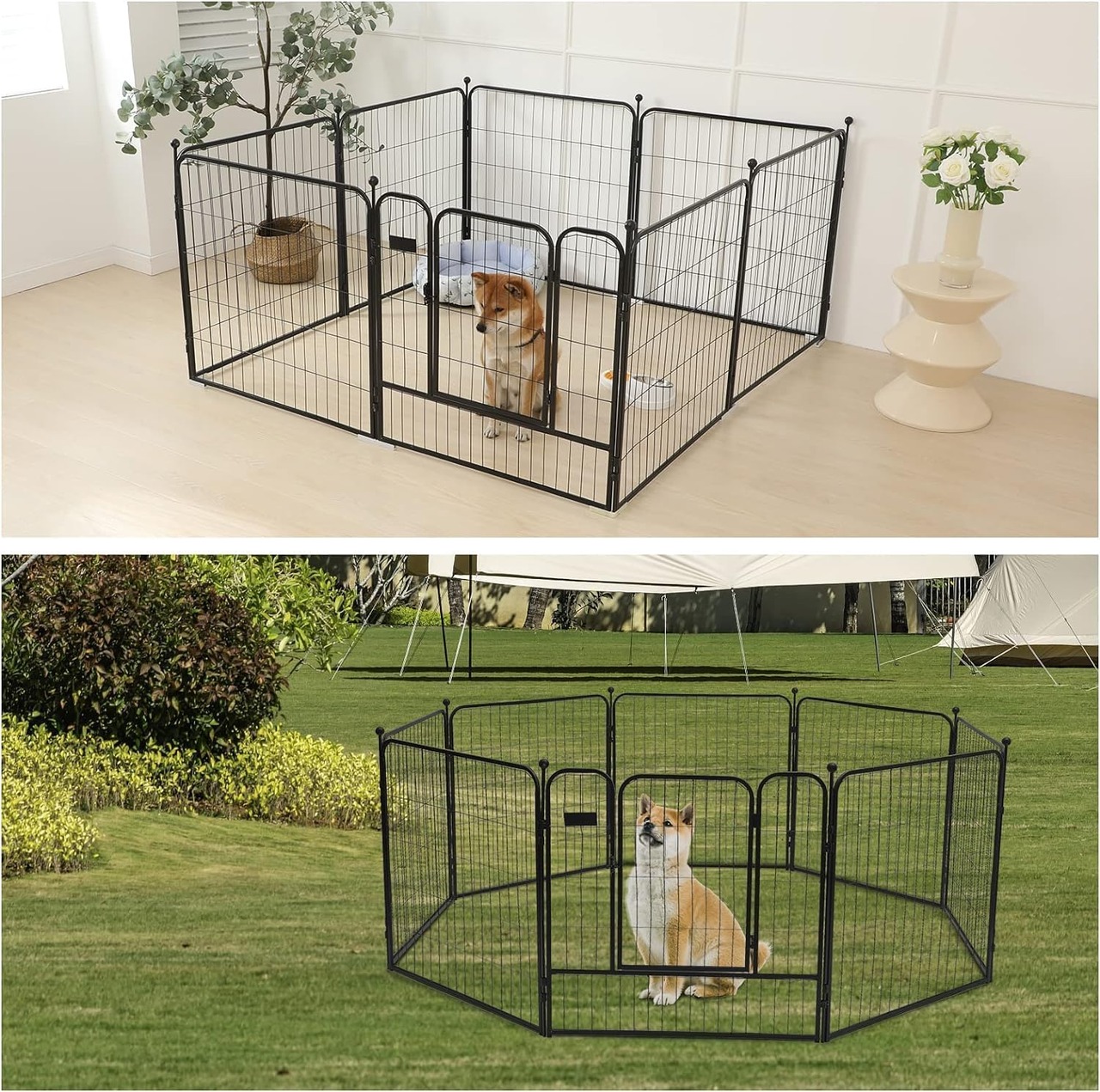 Shinyever 犬 サークル 中大型犬用 犬 ケージ ペットフェンス ペットサークル 犬 ゲージ 幅150*奥行75*高80cm パネル6枚 スチール製 全成長期使用可 複数連結可能 折り畳み式 組立簡単 (ブラック, 高さ80cm, 6枚)