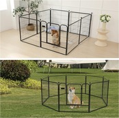 【ペットサークル&商品仕様】犬 ケージ 本体材質:鉄、パネル6枚、 入口パネル1枚含む、専用金属ロッド6本 +4直角固定具+2直線固定具 6つの吸盤+6本の帯 パネルサイズ:80*75cm 総重量14Kg, 優れた安定性を提供できる。