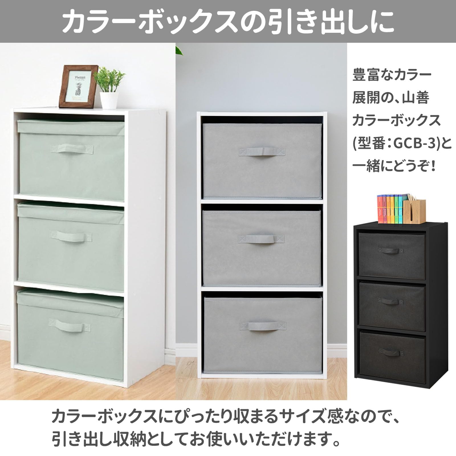 ●3個セットだから、3段のカラーボックスに調度いい