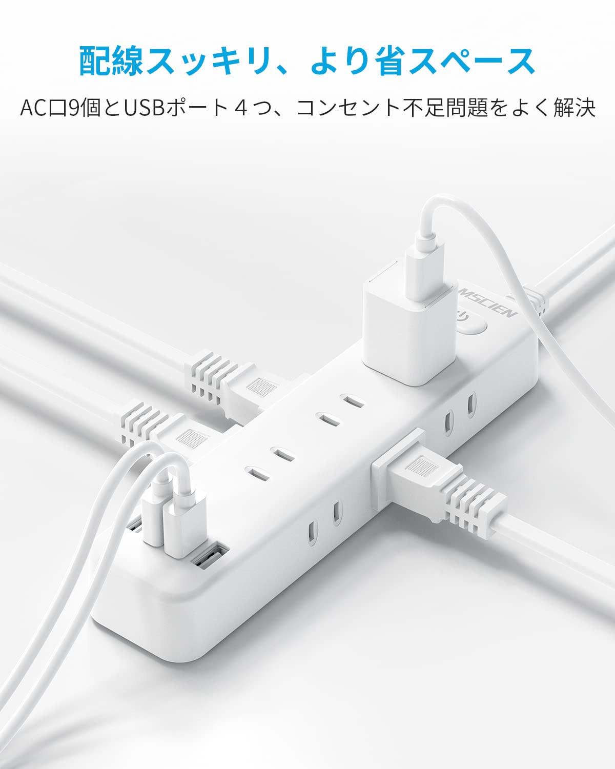 Mscienエムサイン 延長コード 5m 電源タップ usb付き 9個AC口 4個USBAポート テーブル oaタップ たこあし 一括スイッチ付き コンセント 分岐 蛸足コンセント usb-a タップ