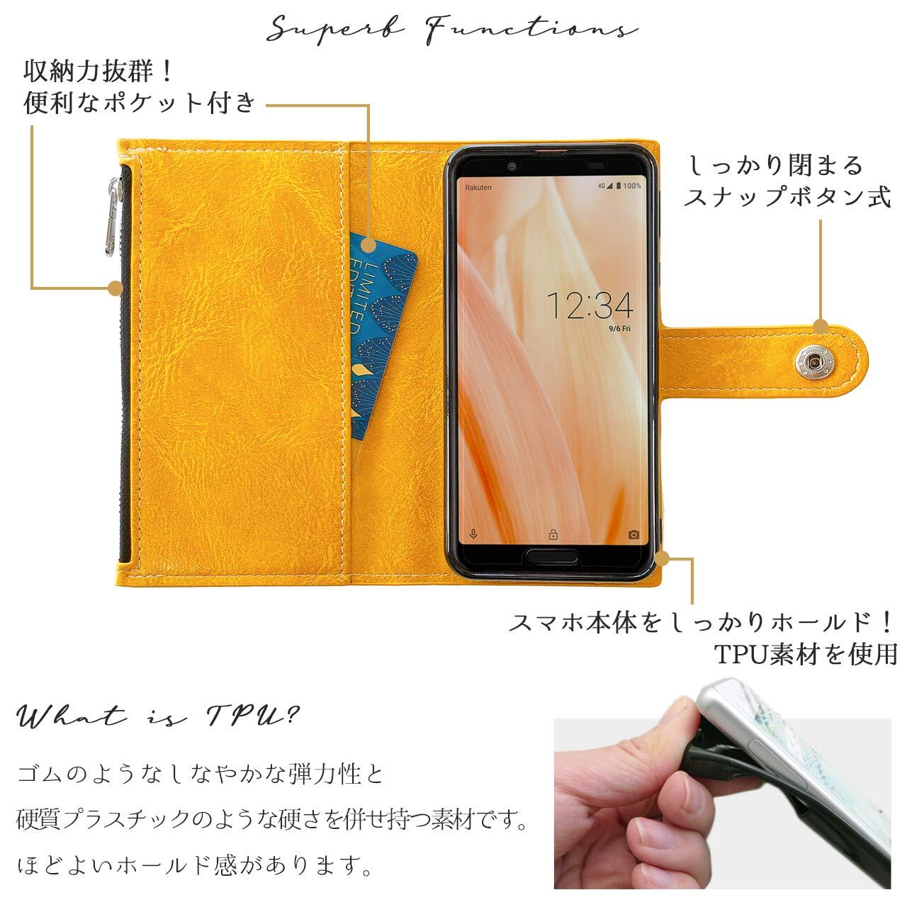 Android One S8 S8-KC 専用 ケース カバー 手帳型 AndroidOneS8 AndroidOneS8ケース S8KC S8-KCケース S8KCケース 手帳ケース 手帳型ケース スマホケース チャック付き イエロー