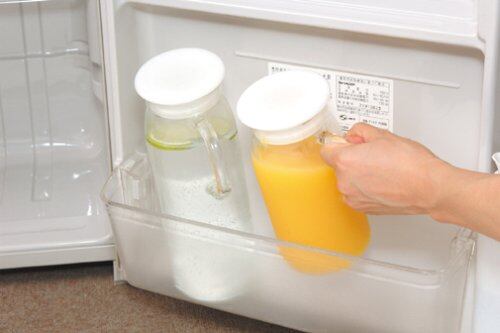 取って付きなので冷蔵庫の出し入れがらく、ドアポケットにもぴったりサイズ。口元が広く洗いやすい。