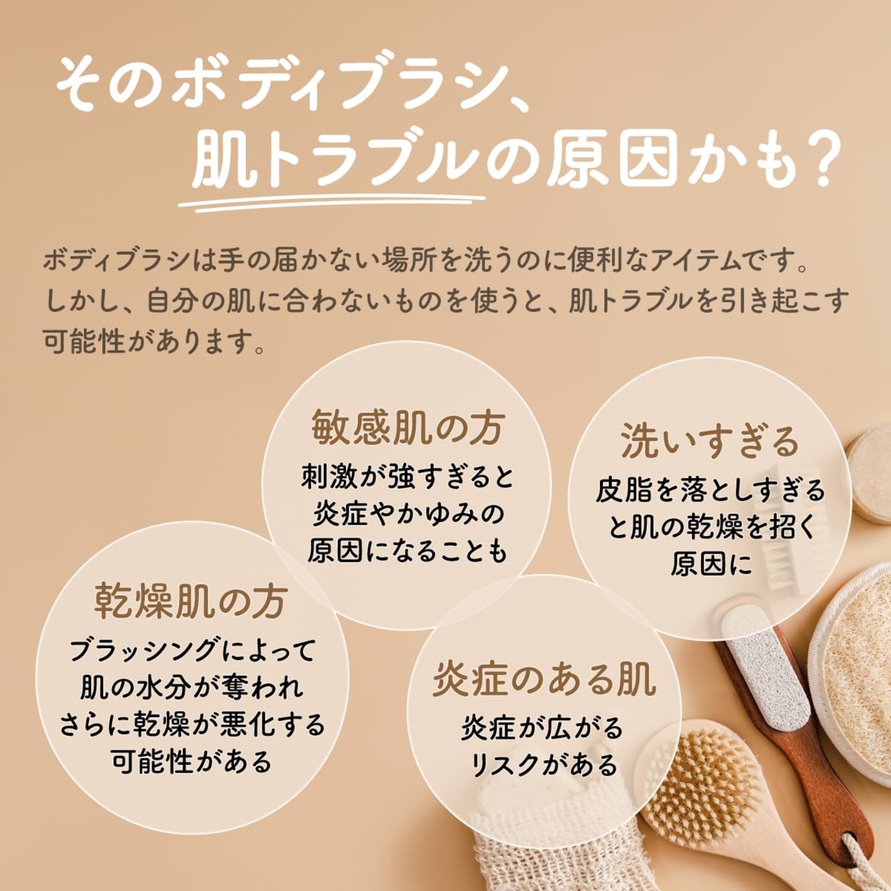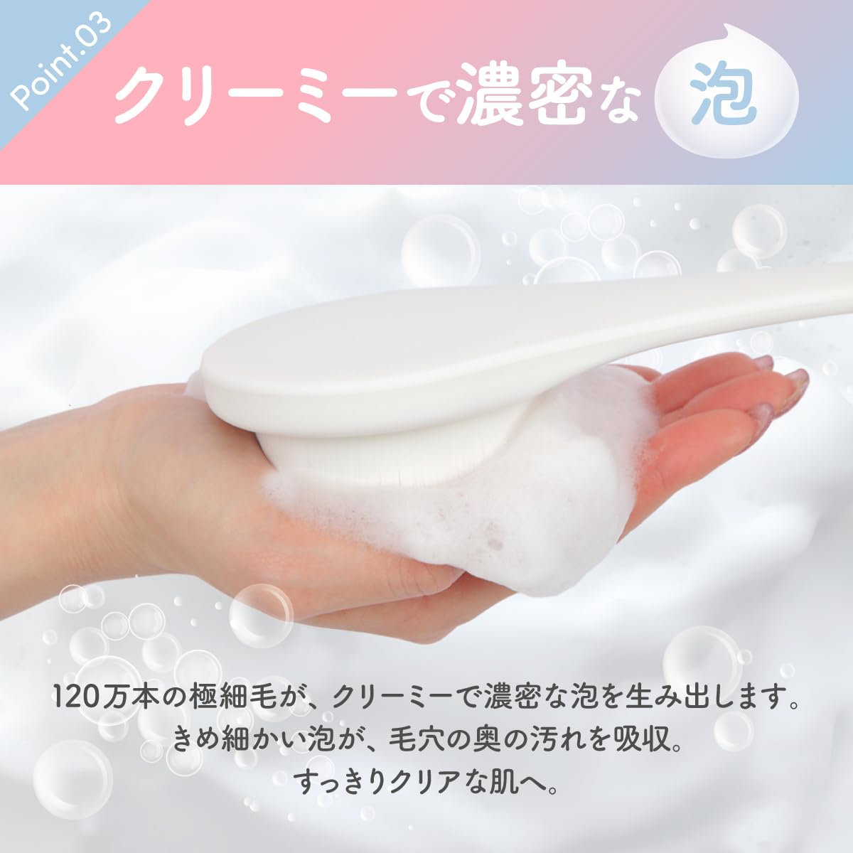 【肌への負担を最小限に】低刺激の極細毛が肌を優しく洗い上げます。敏感肌の方も安心して使えます。