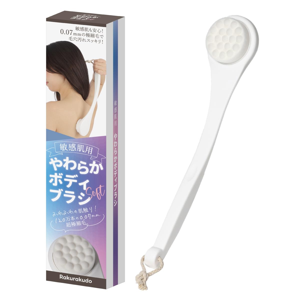 ボディブラシ 背中ブラシ 敏感肌 柔らかい極細毛120万本 背中洗い・背中ニキビ対策に |Rakurakudo