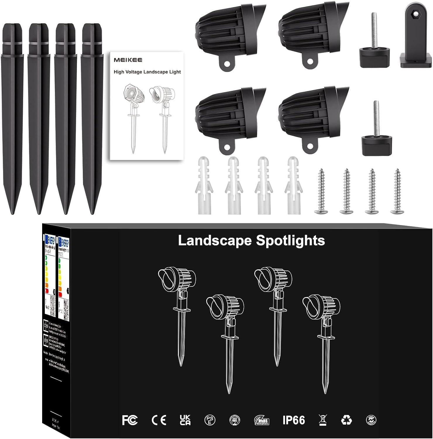 MEIKEE 9W LEDガーデンライト 3000 K 900LM ガーデン スポットライト IP66防水 ガーデン照明 上下左右に回転可能 風景ライト 芝生ライト庭園照明 5万時間の寿命 電球色(PSE認証済 プラグが2つ口)