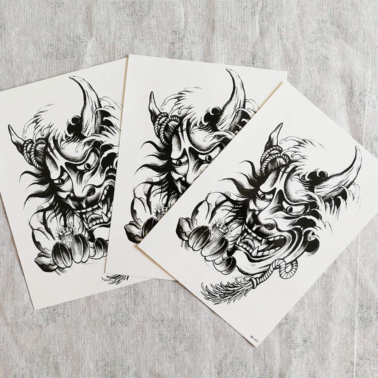 Yesallwas タトゥーシール 般若 お面(はんにゃ) 3枚セット 長持ち タトゥーステッカー ボディーシール メンズ 刺青シール 防水 腕、足、体、胸、肩、背中に簡単貼る TATOO 15x21cm (A)