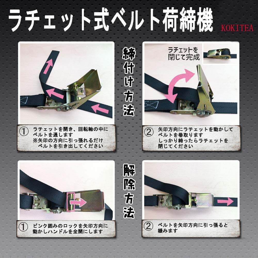 KOKITEA荷締めベルト ラチェット式 ベルト 荷締機長 4m/6m 固定ベルト 固定バンド 破断荷重800kg 2本セット 締付固定 多用途 引越し 運搬用ラッシングベルト (4m)