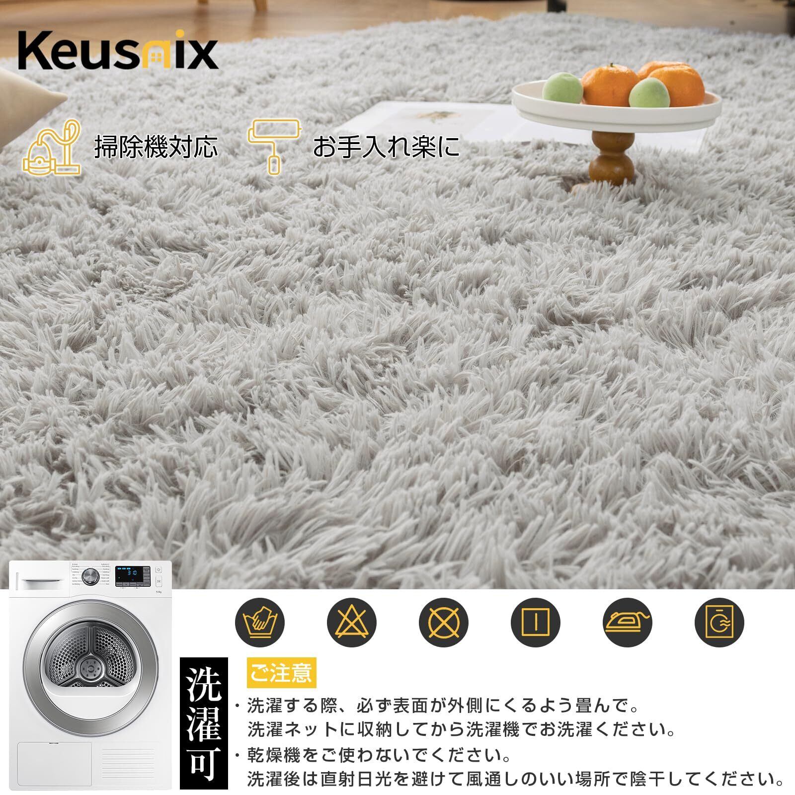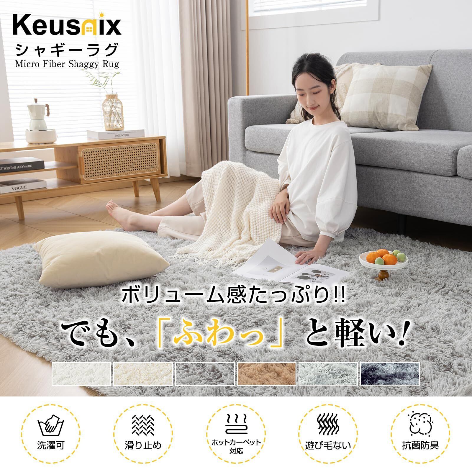 Keusnix ラグ カーペット ラグマット ふわふわ シャギーラグ 120x160cm 絨毯 滑り止め付 洗える 肌触り優しい 防ダニ 抗菌 防臭 オールシーズン快適に使用 床暖房 ホットカーペット対応 ライトグレー