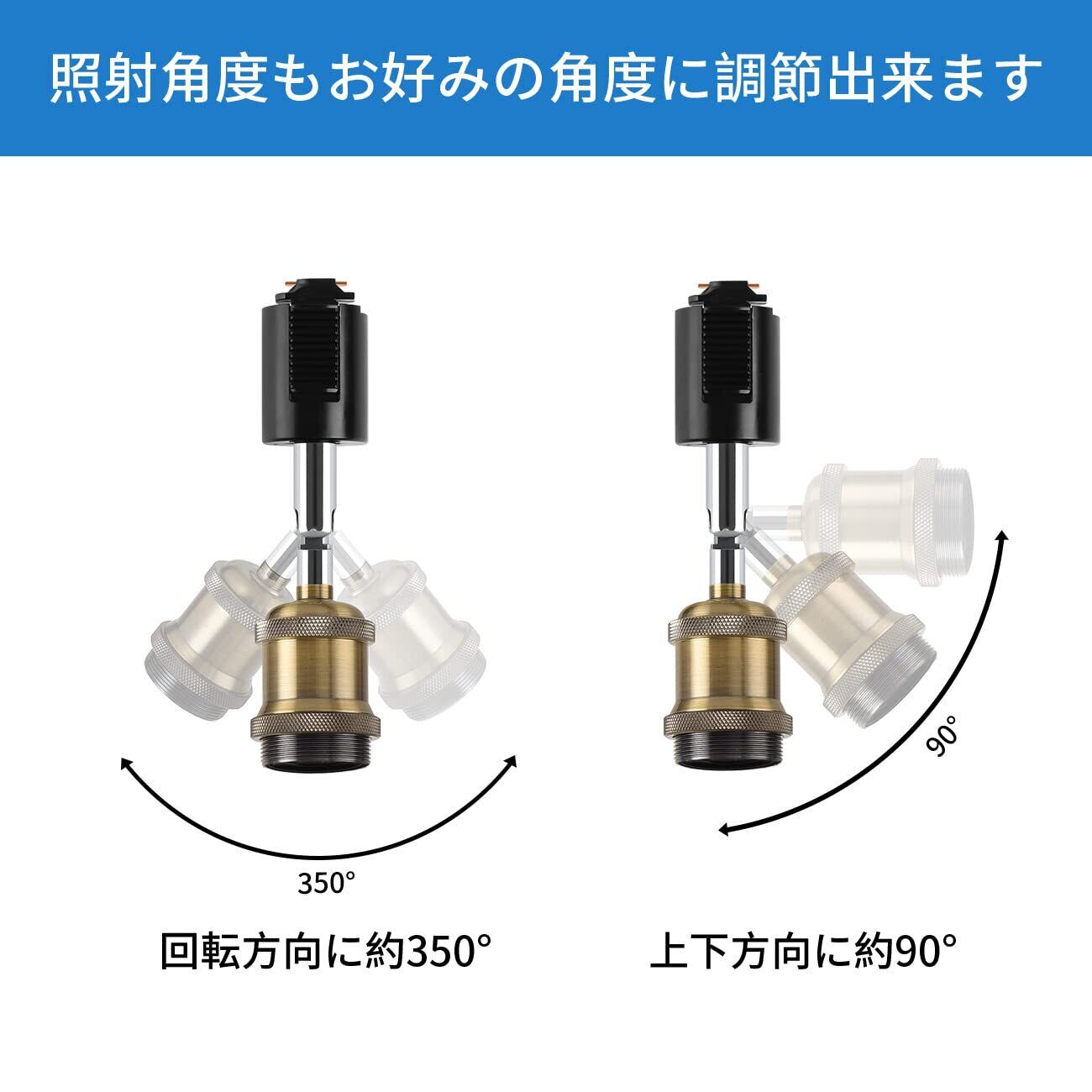 【商品情報】注意:電球は付属しておりません。 ◉口金:E26 ◉可動範囲:上下約90度、回転約350度 ◉使用可能電球:口金E26 150Wまで(重量200gまで) ◉取り付け:ダクトレール ◉パッケージ:4個セット