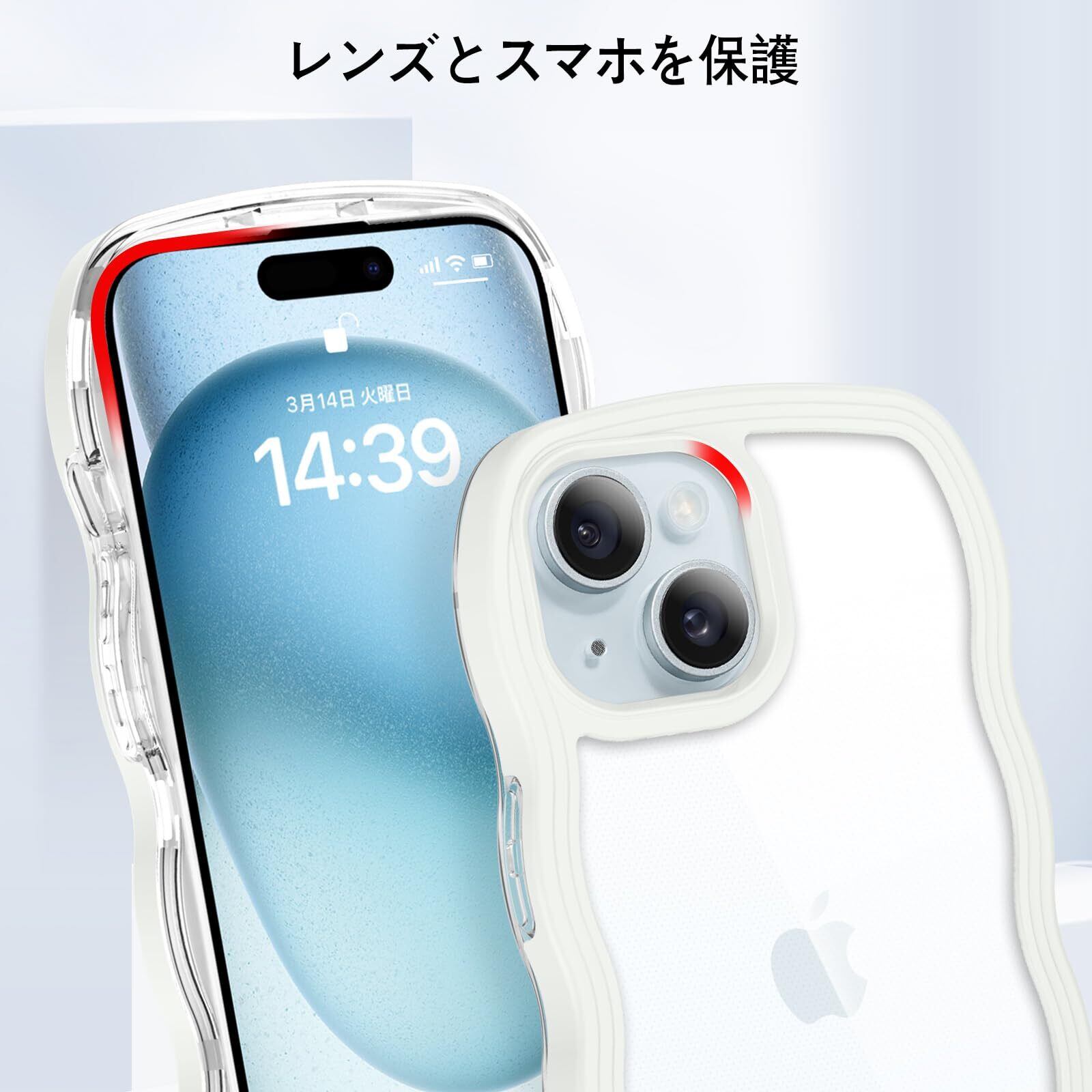 BENTOBEN iPhone 15 ケース クリア 韓国 可愛い ウェーブ ソフト 滑り止め TPU 薄型 軽量 耐衝撃 おしゃれ スマホケース ストラップホール付き アイフォン15 ケース ホワイト