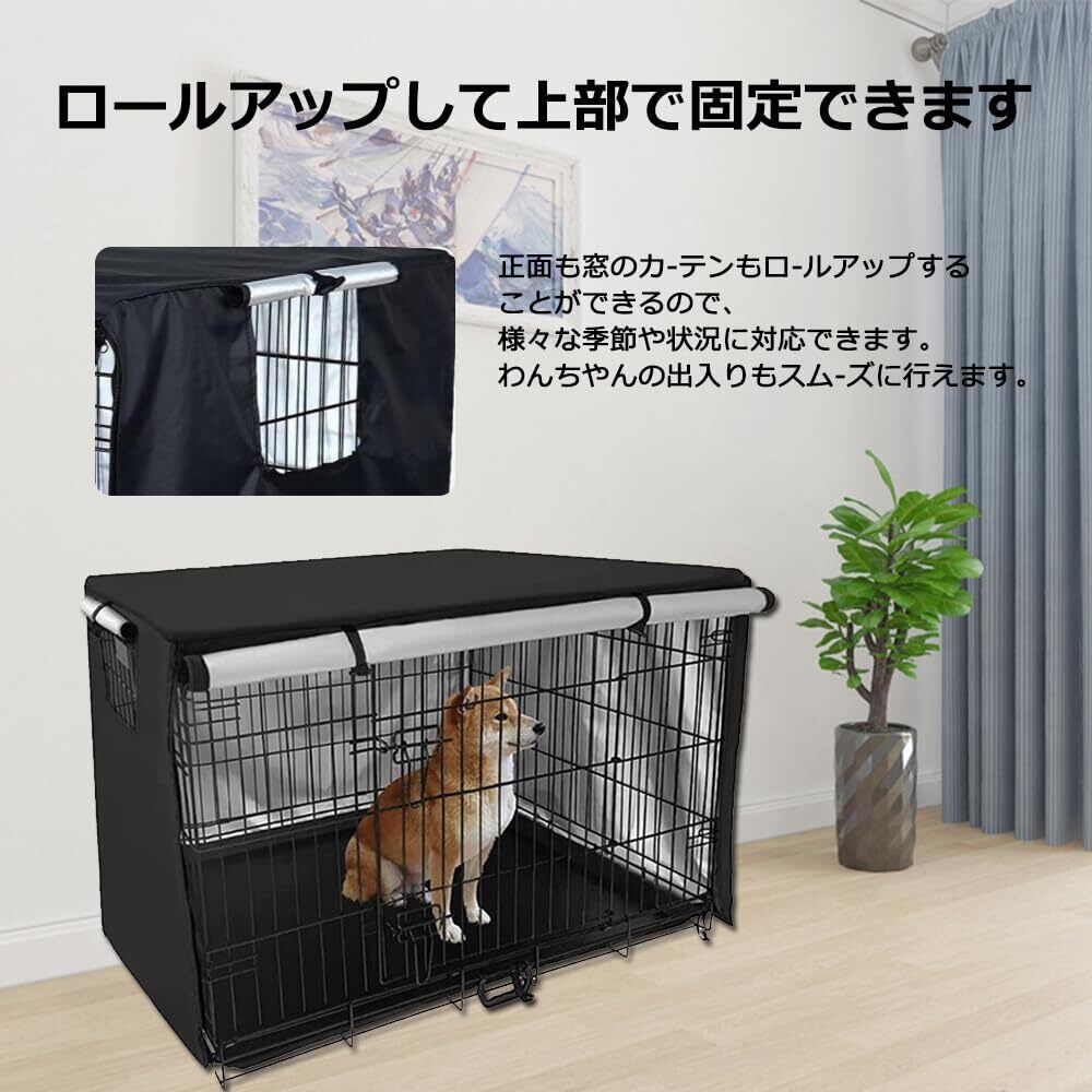 Pelconei 犬のケージカバー ペットサークルカバー 犬用ケージカバー 防寒 夏 通気 水洗い可能 防水 落ち着ける空間作り ファスナー付き 取り付け簡単 (ブラックL(124*79*84cm))