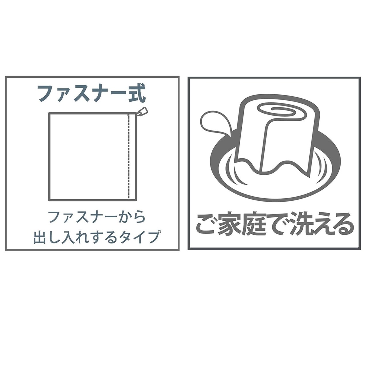 カバーサイズは55×59cm。開閉部は座布団の出し入れが簡単なファスナー式となっています。