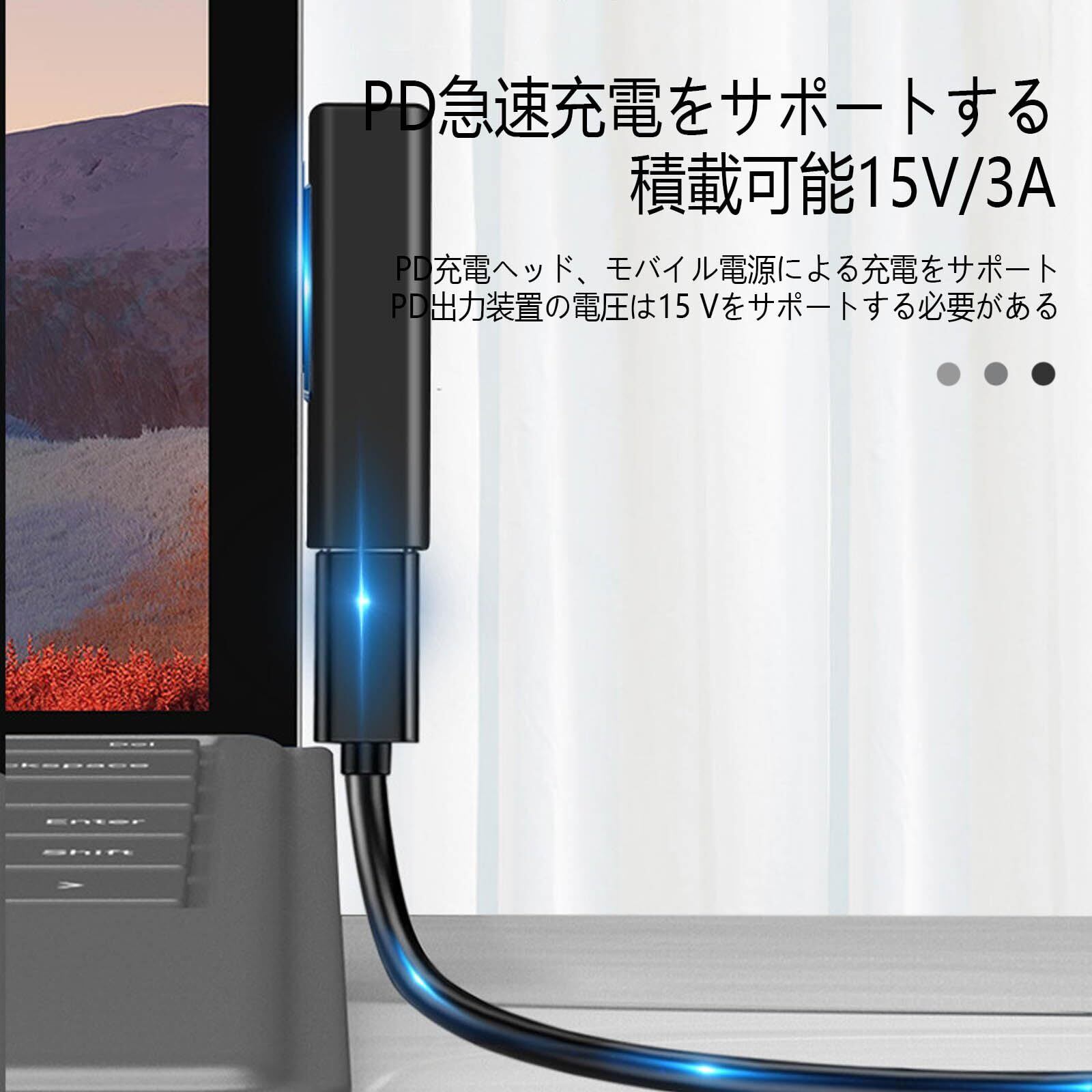 [LUYING] USB-C to Surface Pro 急速充電アダプタ 15V/3A 65W PD Type-Cケーブル マイクロソフト Surface Pro 7/6/5/4/3/X Surface Go1/2 Surface Laptop 1/2/3/4/5 Book タブレット対応 黒