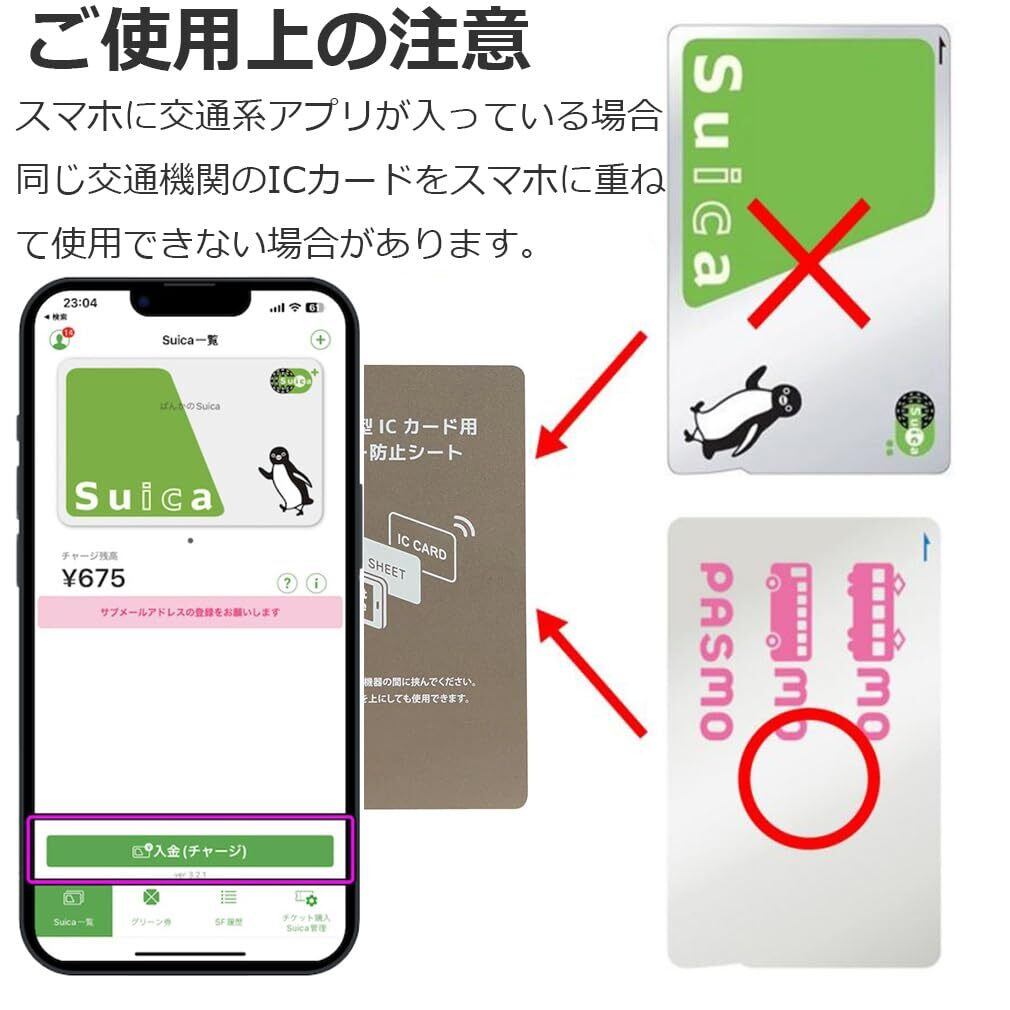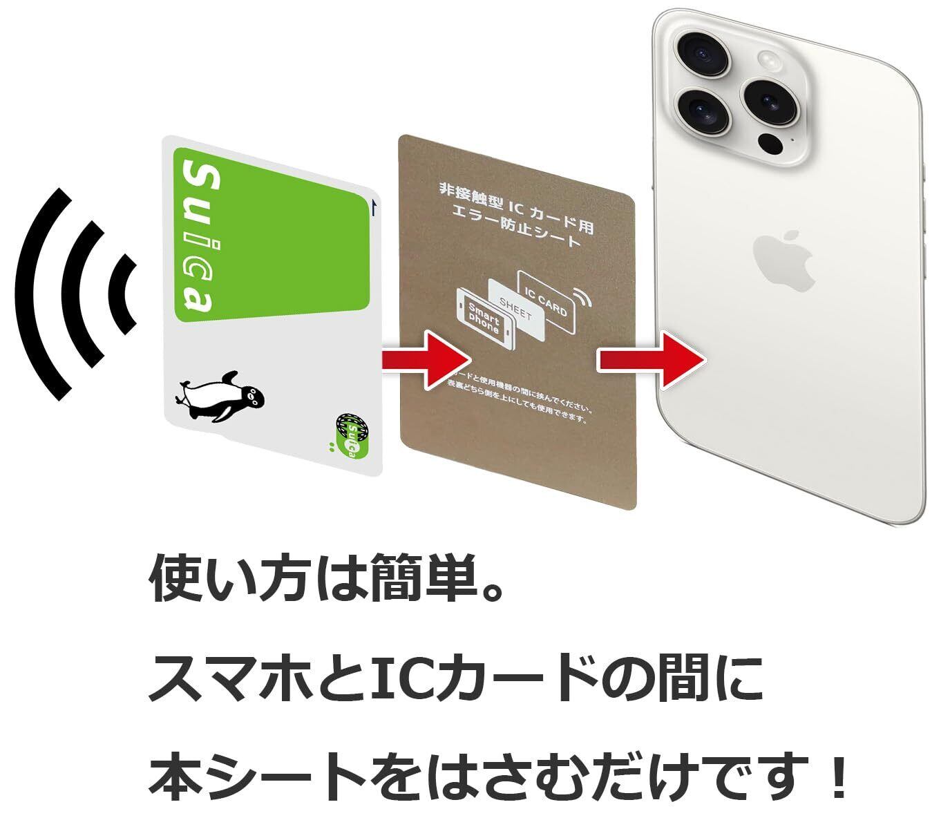 【特徴2】スマートフォンとICカードの間に入れて電磁波の干渉を防止する磁気エラー防止シートです。厚さが0.18㎜の薄型タイプです。(貼り付けるシールタイプではありません)