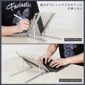 「様々の適用場面」 タブレットケース装着しない派に是非オススメしたい一品です。フックの部分はちょうどタブレットにフィットするようなサイズで、保護ケースを取り付ける場合は、できるだけ薄型のケースを装着して本製品をご利用ください。打ち合わせ、授業などの時に資料を確認したり、メモを取ったりして、片手でタブレットを持ち歩いてもしっかりと掴められ、使い心地がいいです。カフェや公園などでのんびりと読書したり、絵を描いたりする時にも大変役に立てるアイテムです。
