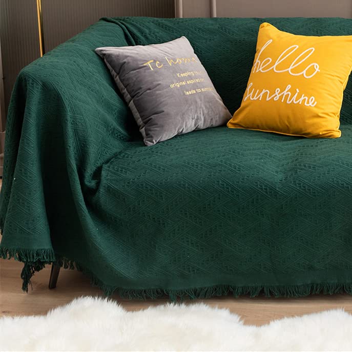 Kaoslen マルチカバー ソファカバー 北欧風 ソファーかばー 多機能 ブランケット ベッドカバー フリンジ付き ソファ、ベッドカバー、毛布、テーブルクロスなどに適しています 汚れ防止 滑り止め 傷防止 防塵 四季通用 ダークグリーン 180*230cm(2人掛け)
