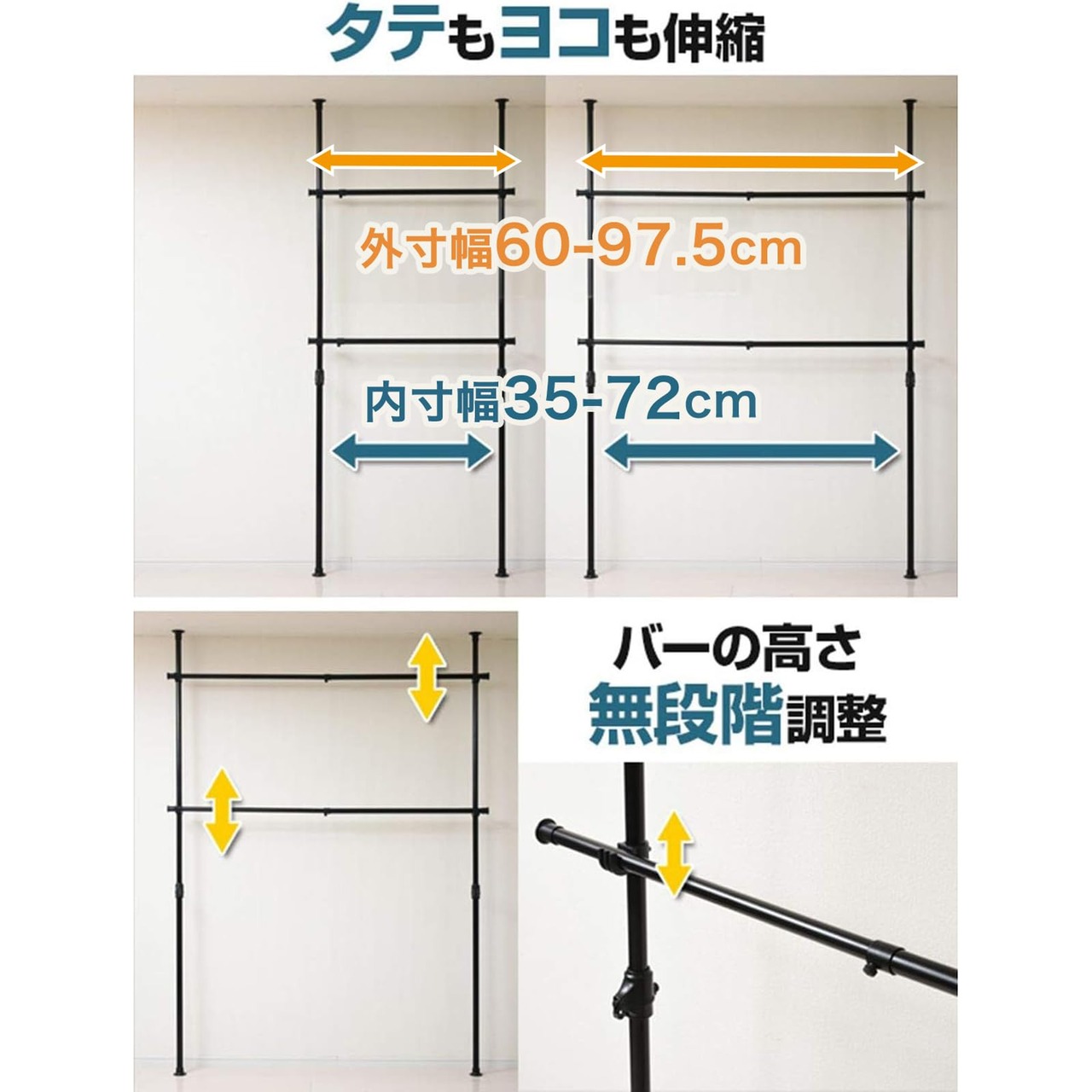 山善(YAMAZEN) 突っ張り ハンガーラック 衣類収納 大容量 耐荷重60kg かんたん突っ張り(実用新案取得済) 高さ 縦横 伸縮 幅97.5cm 布団も干せる 組立品 マットホワイト WJ-775MS(WH) ダブル スリム