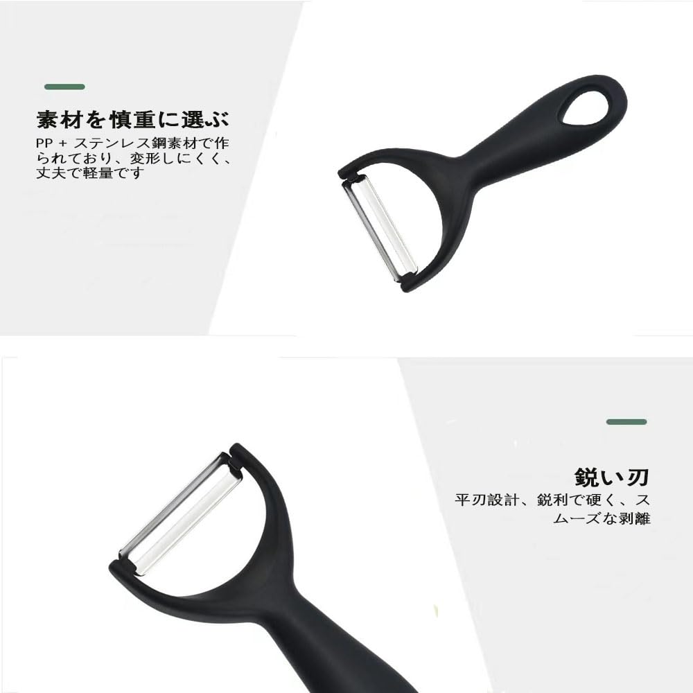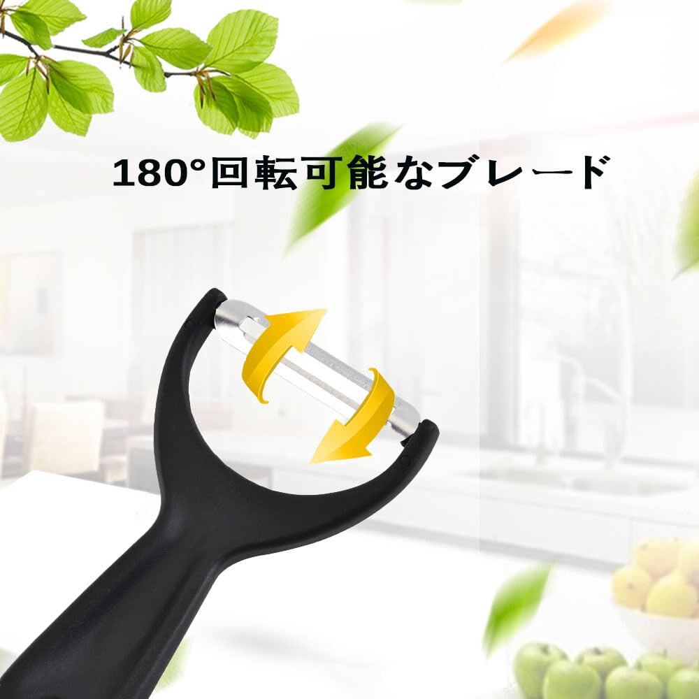 【ステンレス刃は鋭利で耐久性がある】:ステンレス製の刃は切れ味と耐久性に優れ、さまざまな果物や野菜の皮を削るのに適しており、糸も削れるので使いやすい