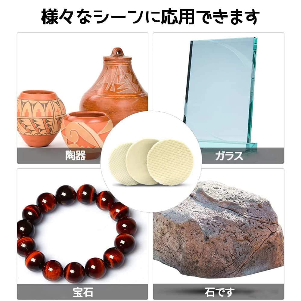 【パッケージ内容】1 *粗目研磨パッド、1 *中目研磨パッド、1 *細目研磨パッド、1 *バフ。