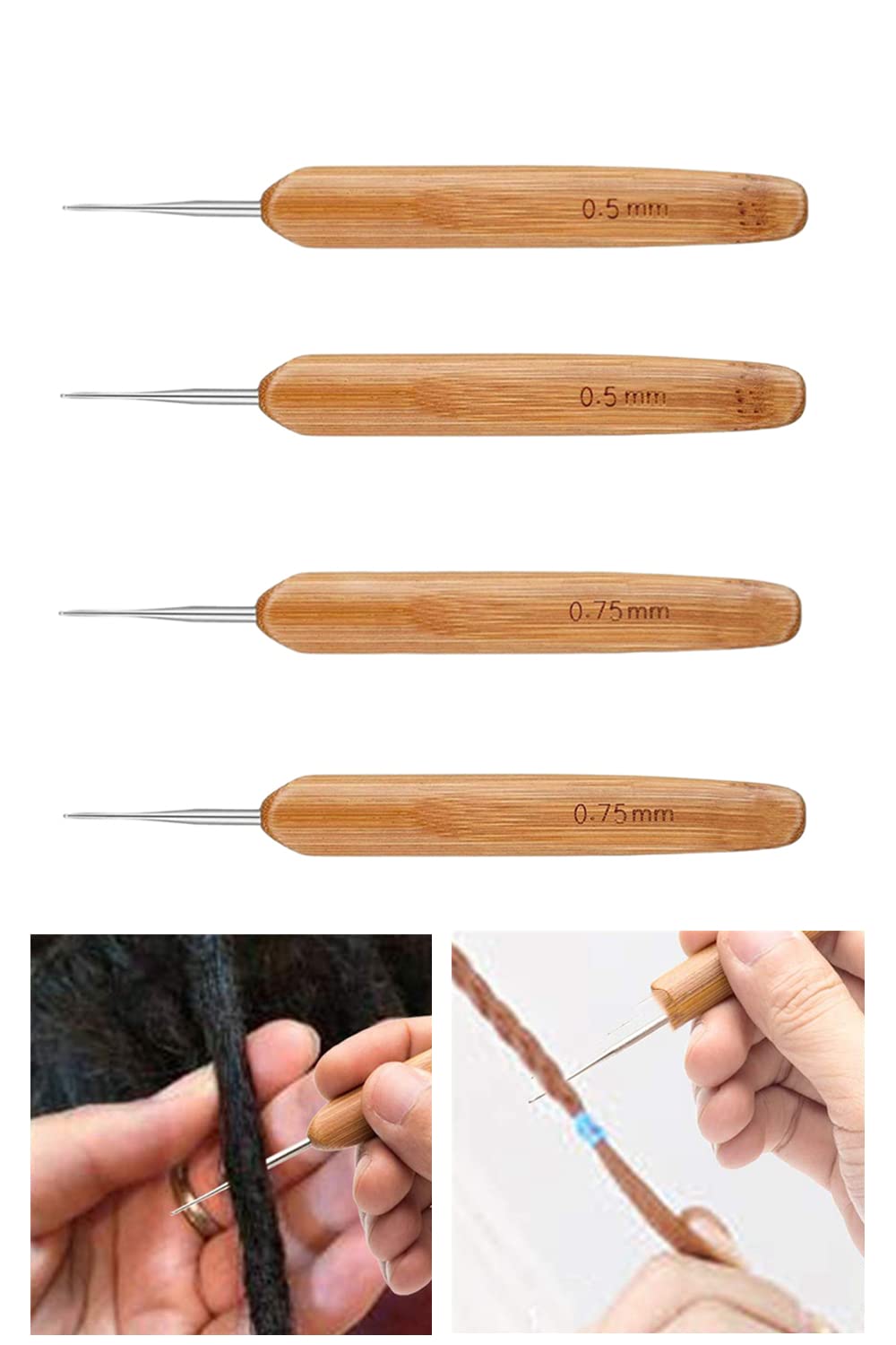YFFSFDC 髪編み用 ドレッドロック 編組毛編みツールかぎ針編みフック ソフトタッチ鋼 0.5 mm 0.75 mm ドレッドヘアかぎ針編み ドレッドロック ニードル ツール4本セット