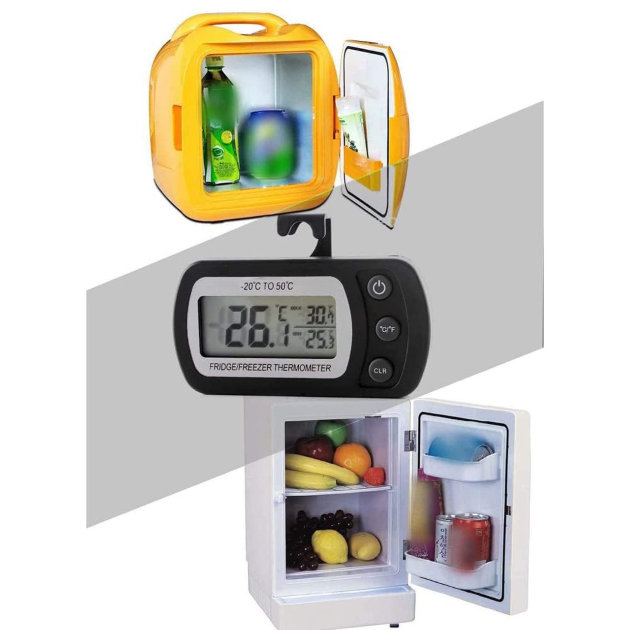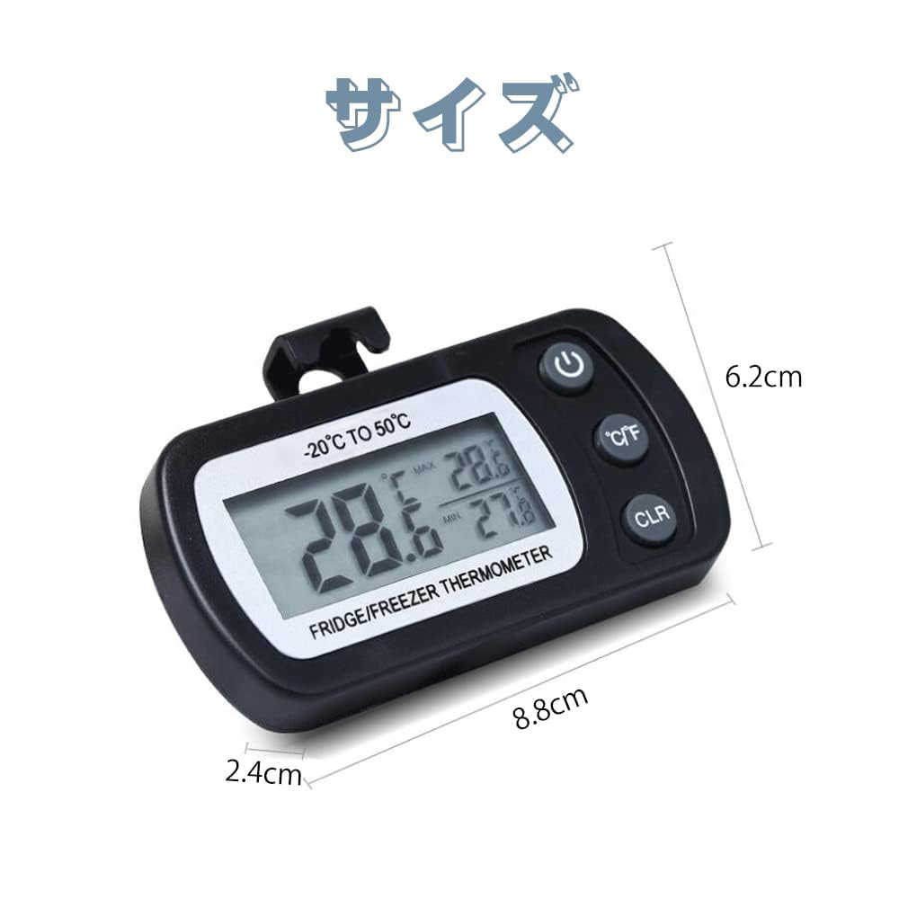 YFFSFDC デジタル温度計 冷蔵庫用 小型 電子温度計 適用温度範囲-20℃-50℃ 防水 軽量 フック付き 置き掛け両用 見やすい キッチン 冷凍庫 ペット飼育用 (ブラック)