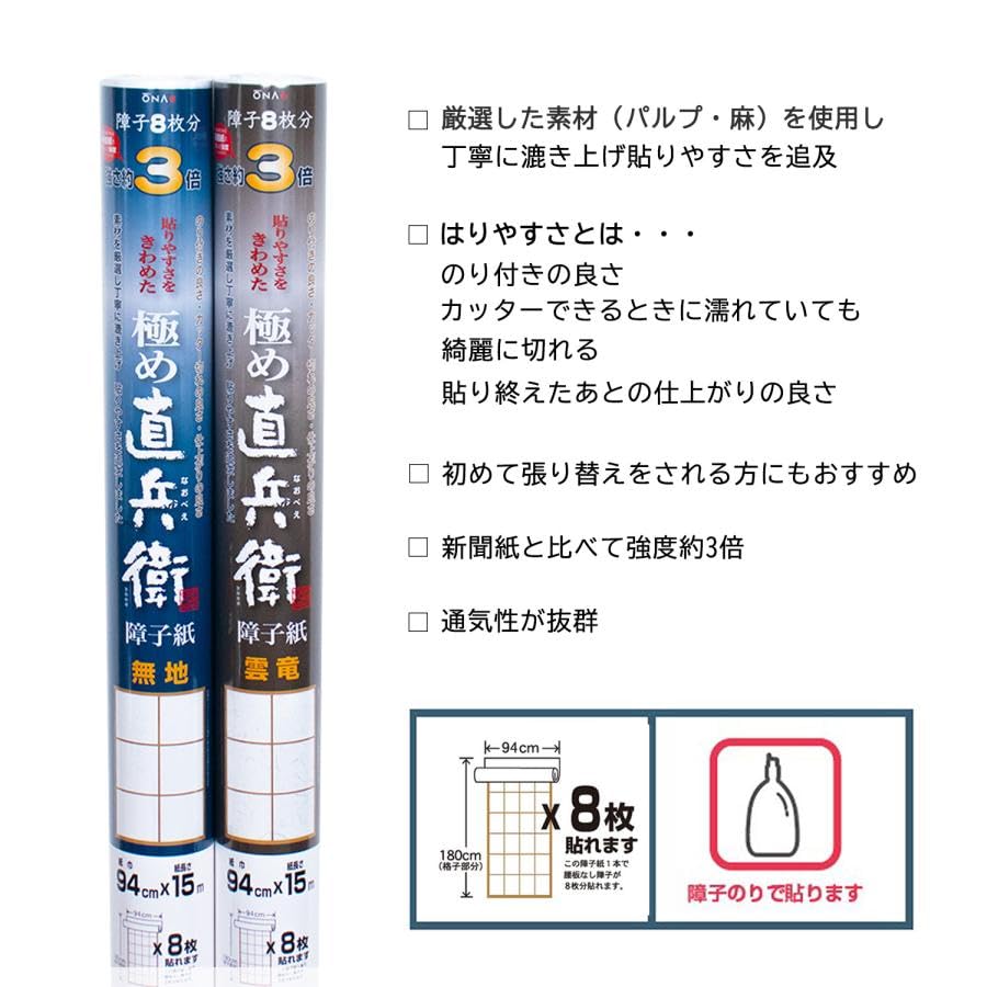 大直 障子紙 極め直兵衛(なおべえ) 巾94cm×長さ15m(8枚分) 強さ約3倍 一枚貼り 日本製 無地 KN-115 【貼りやすさをきわめた障子紙】