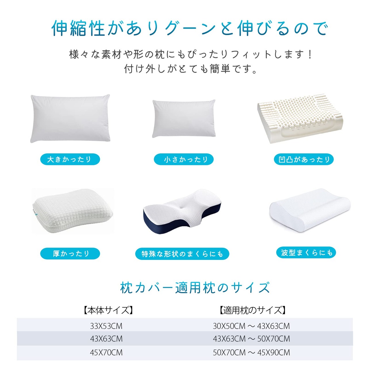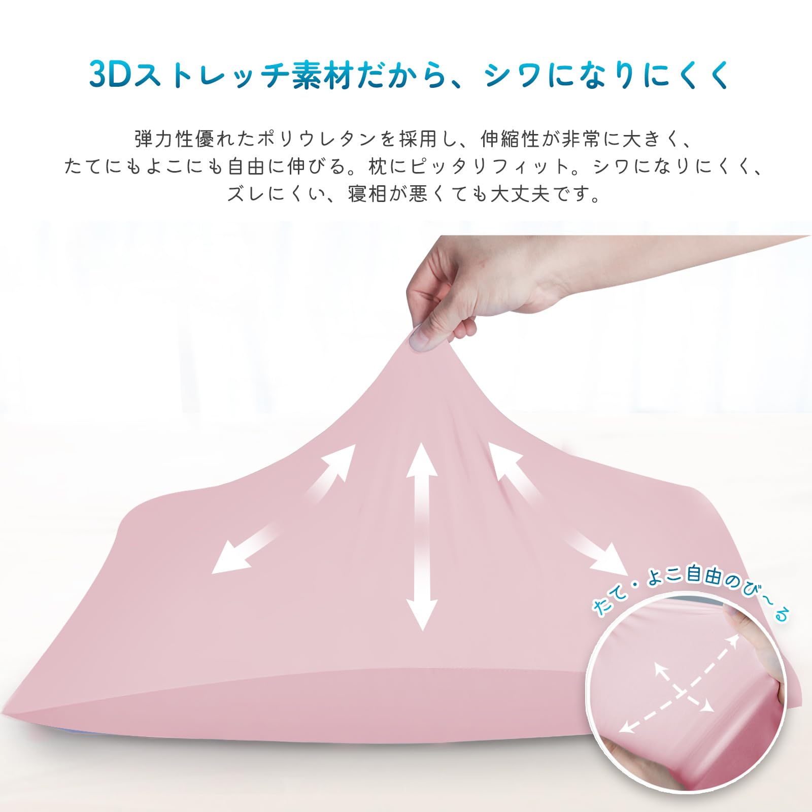 【伸縮性抜群 さまざまな枕に対応】枕カバー本体のサイズは33x53cmです、『3Dストレッチ』特性を持ち、タテにもヨコにも伸びるので、30x50cm〜43x63cmの枕に適用で、きれいにフィットします。
