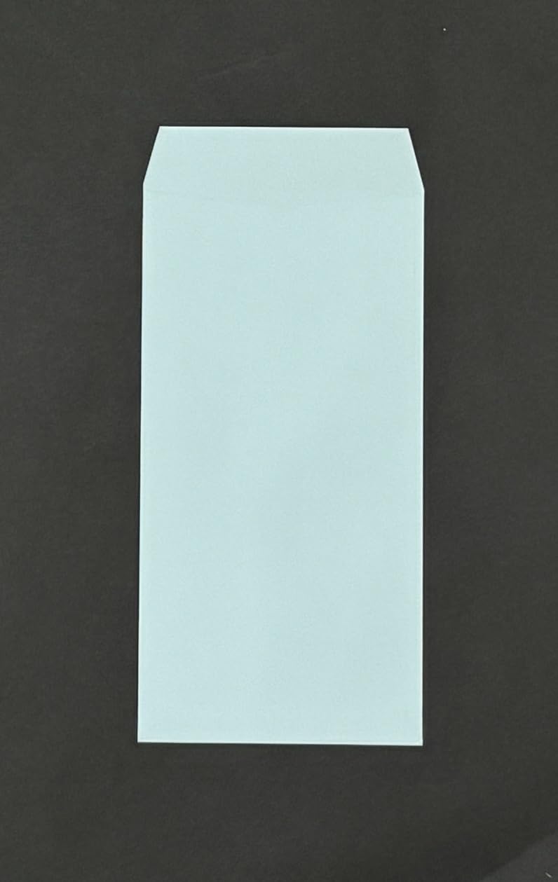 郵便枠入りの長3カラー封筒です。(水色) 貼り合わせがセンターにないので宛名書きがスムーズです。1パック100枚入り。
