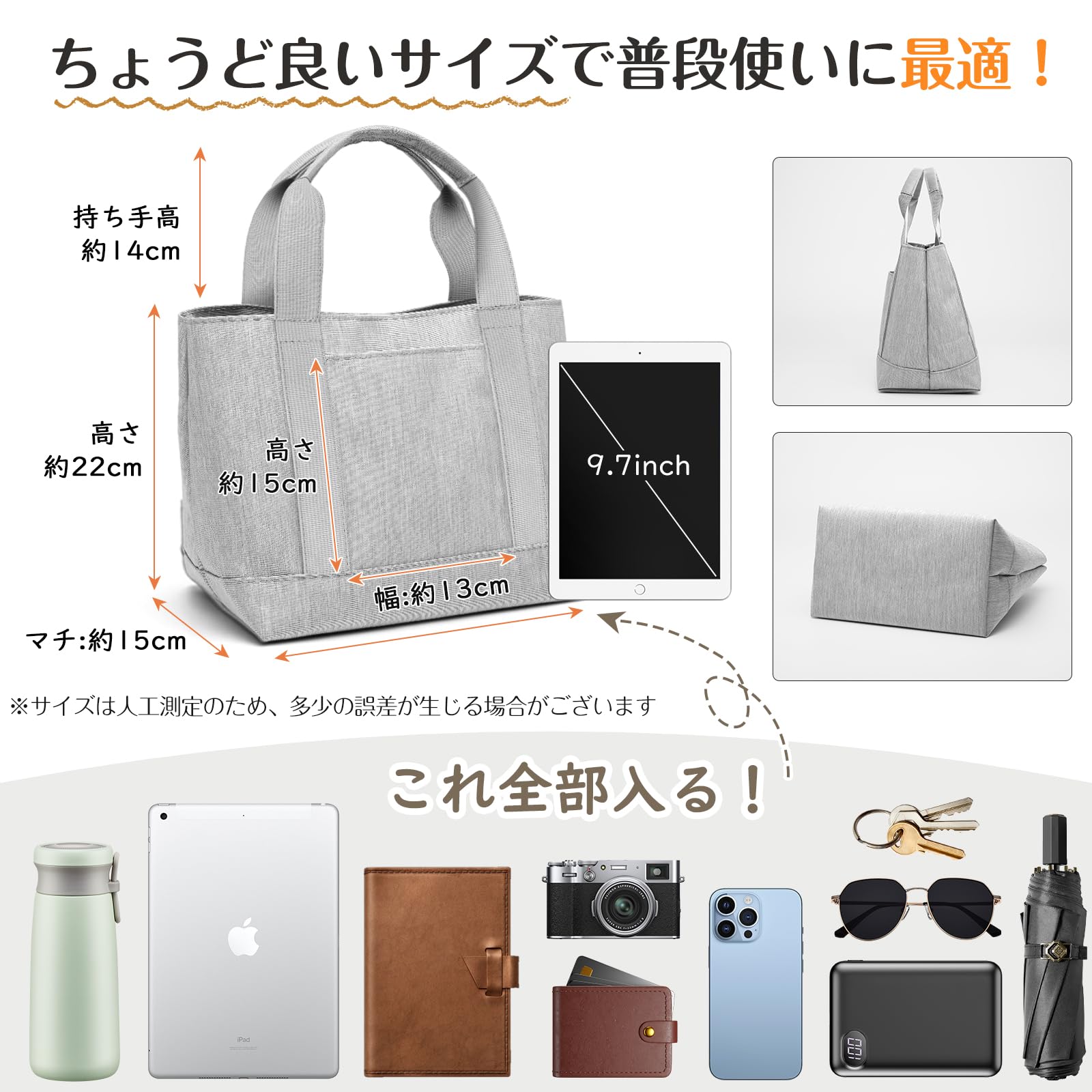 【商品説明】ENLANミニトートバッグはきれいに仕分けできる上、優れた収納力を持ち、軽量で持ち運びにも便利、デイリー使いにも、お出かけにも使えます。製品サイズ:高さ22cm×幅24cm×マチ15cm 持ち手の高さ:14cm ■本体重量:約380g 外ポケット:1 内ポケット:3つの仕切りと6つのポケット
