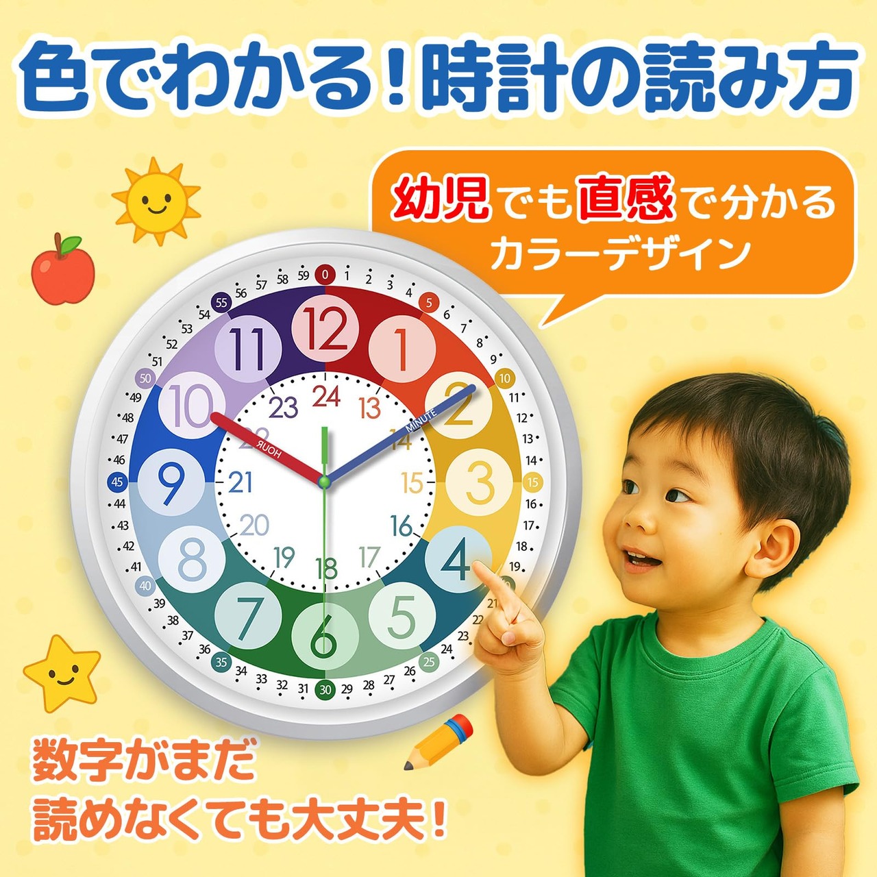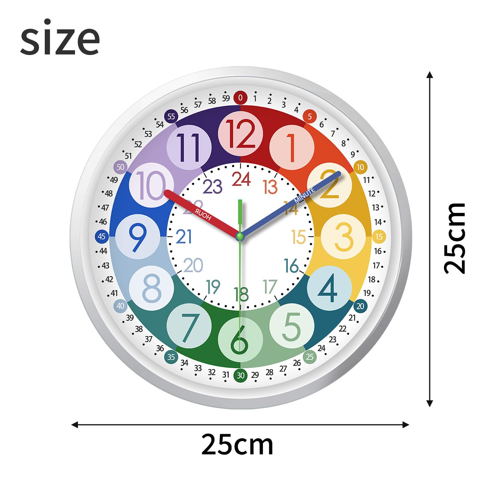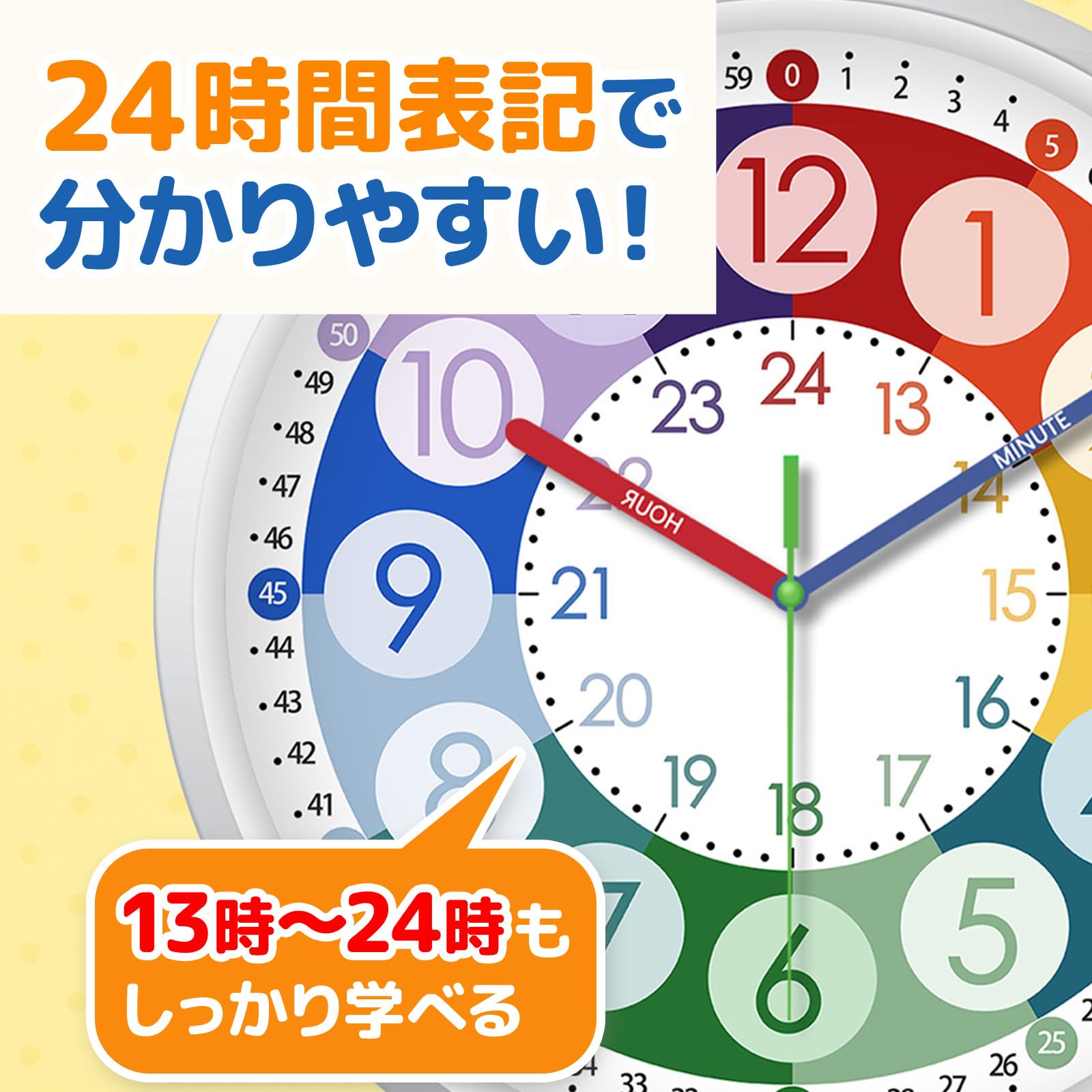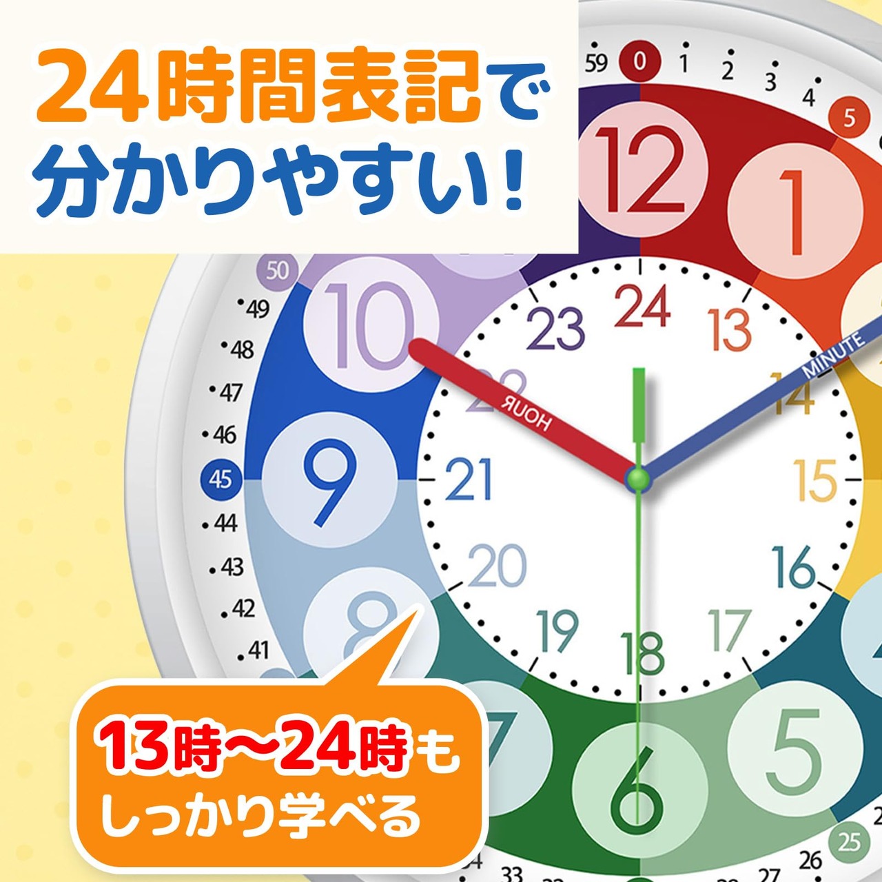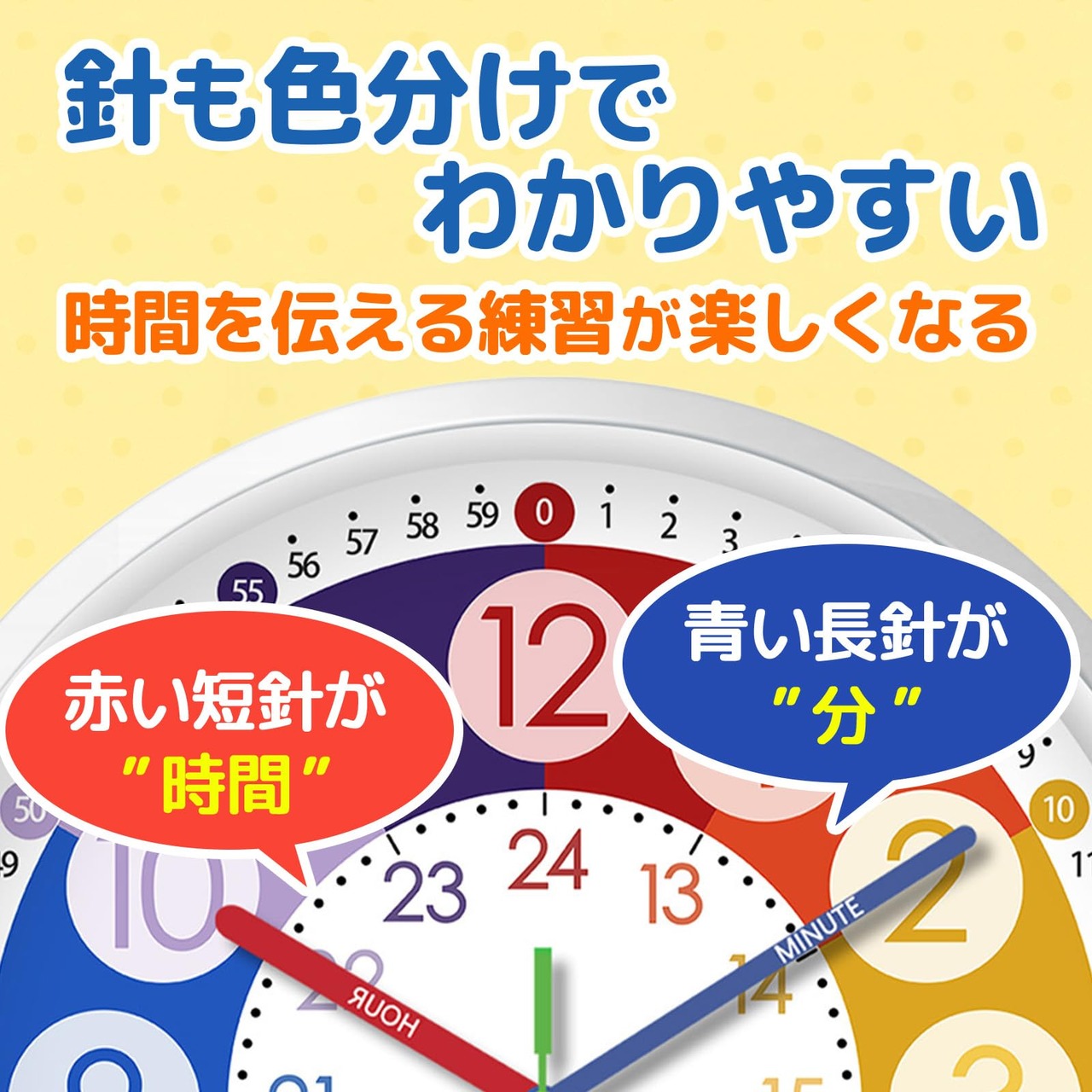 PREMIUMM 知育時計 壁掛け 子供用 色分け 学習時計 時間学習 算数教材 小学生 勉強 知育 カラフル (直径25㎝)