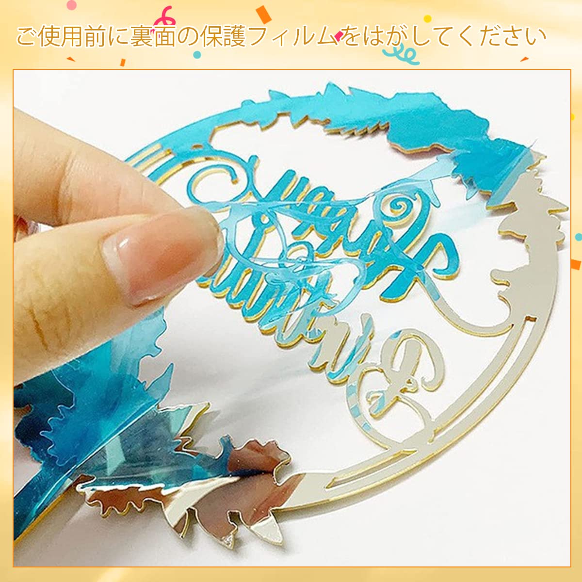【メイン素材】高品質のアクリル素材で作られたケーキトッパーは表面が滑らかです。裏面に保護フィルムが付いて、使用する時に剥がしてください。