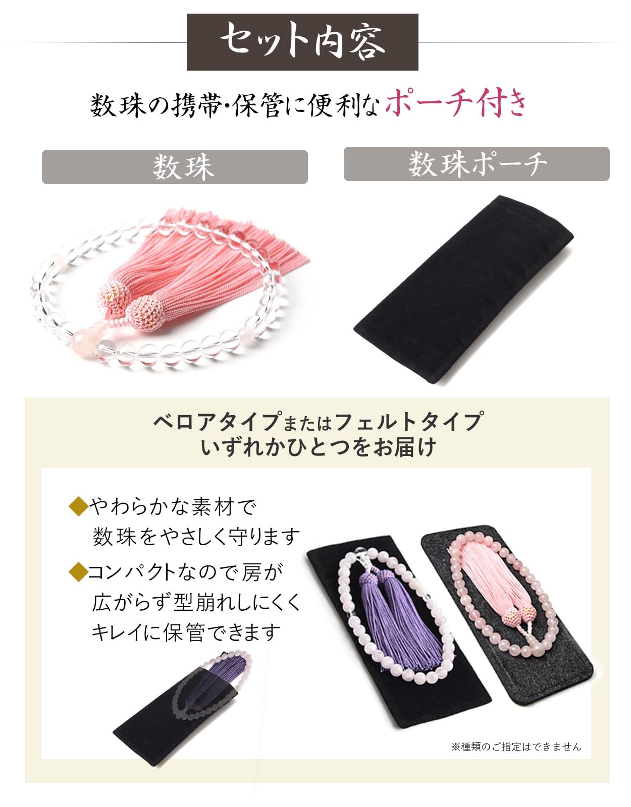 付属品:携帯に便利な数珠袋付き。