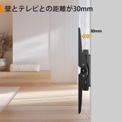 【省スペースの薄型外観を実現します-壁からの距離が30mm】壁とテレビとの距離が30mmと薄型で、省スペースで取り付けが可能。金具の厚みも薄く、壁にぴったり固定できるので、テレビを壁に一体化させた状態ですっきり見せられます。さらに便利なように、ブラケットには落下防止エッジ機構が組み込まれており、テレビを簡単に取り外したり固定したりできます。