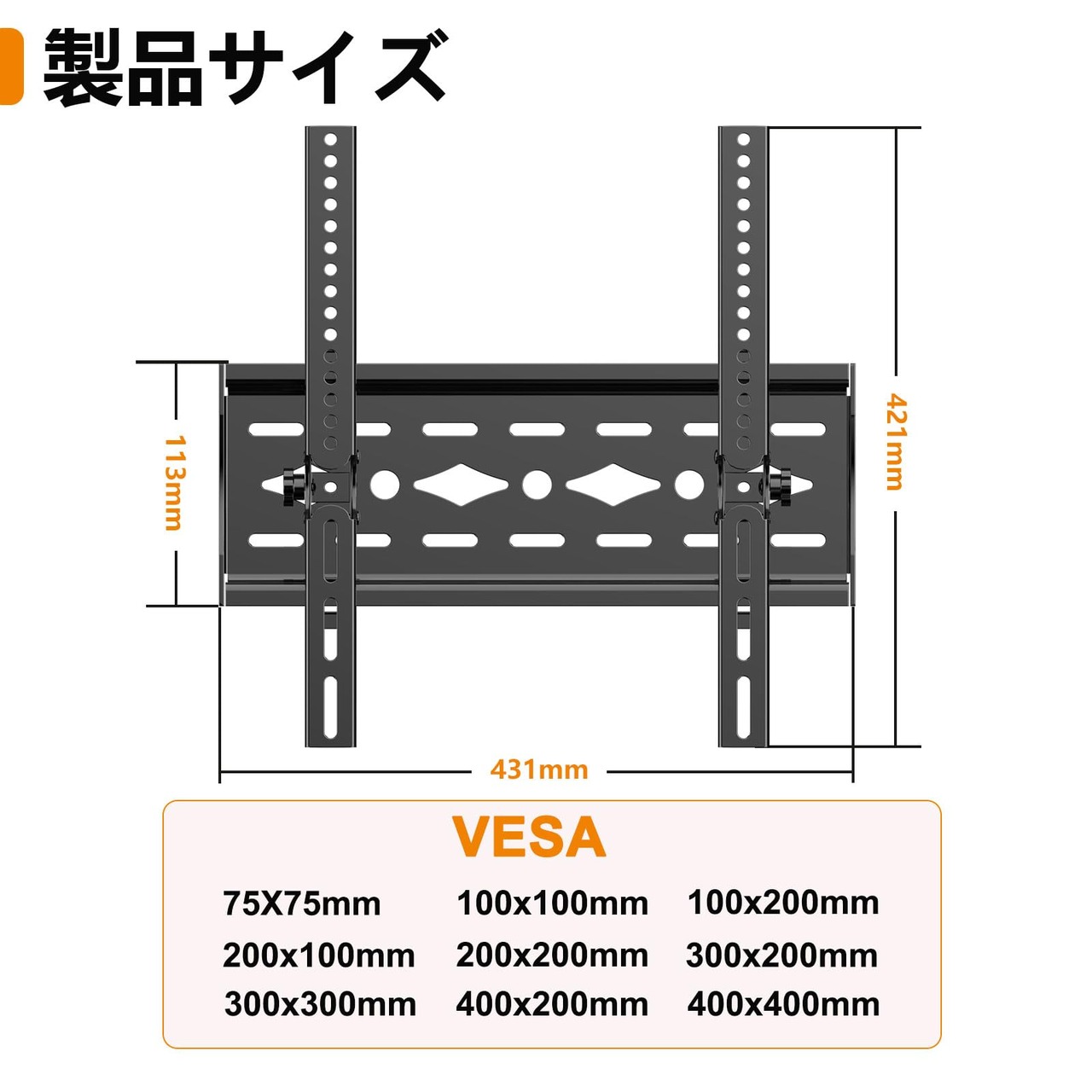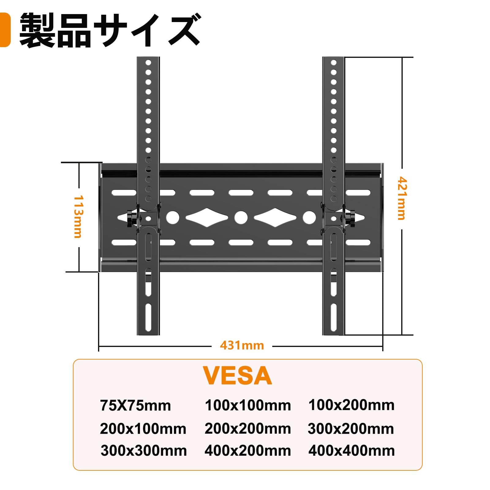 【 テレビ壁掛け金具-高い汎用性で幅広いテレビに対応】 JXMTSPWのテレビ壁掛け金具は、VESA規格75x75 ~ 400x400mmの45kgまでのほとんどの26インチ~63インチのテレビに対応します。ご購入前に、テレビの画面サイズ、重量、VESA規格をご確認ください。